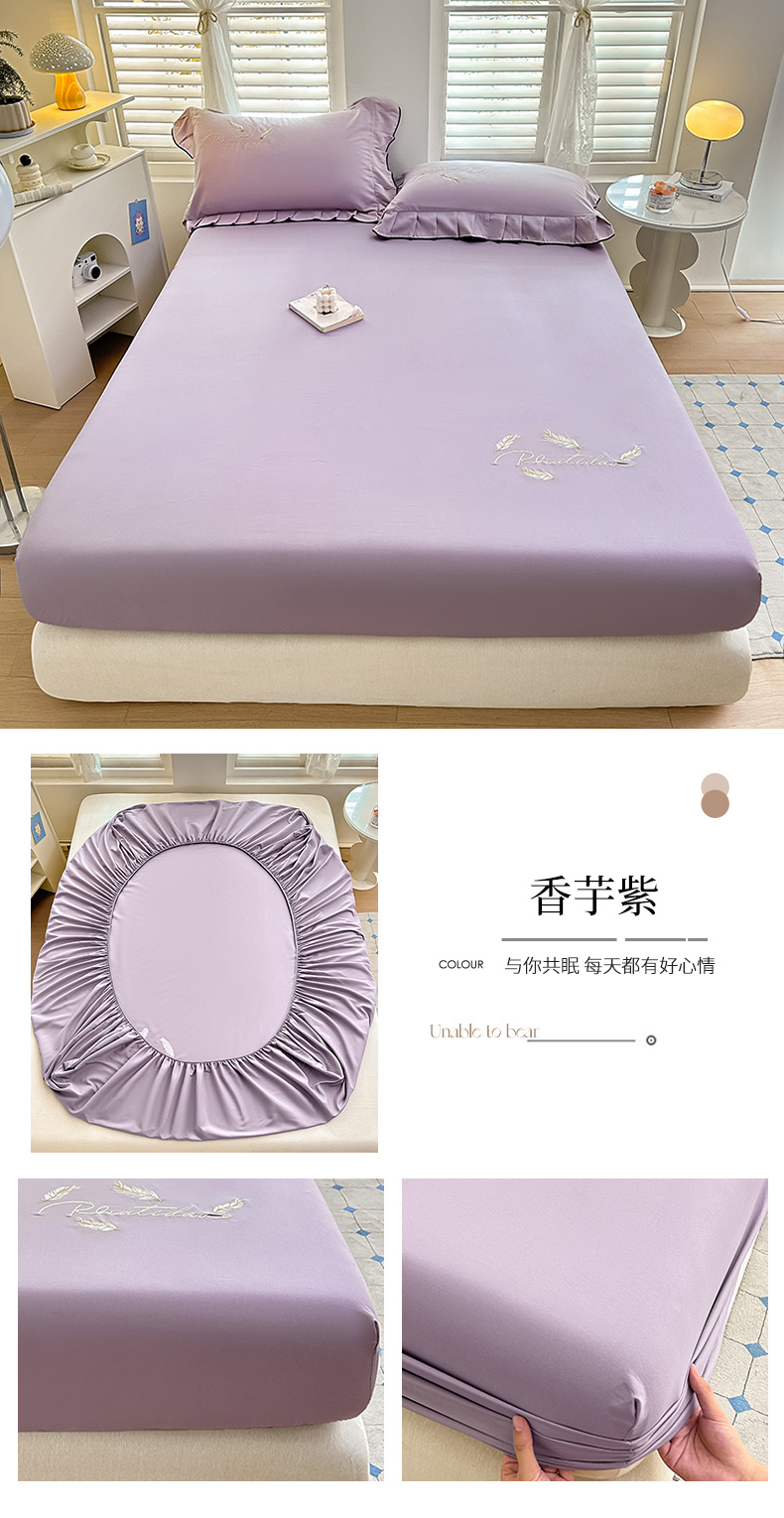 柔享家(原芷澜家纺) 2025新款法式纯色水洗棉刺绣绣花磨毛床笠汇总(有同款四件套) 香芋紫