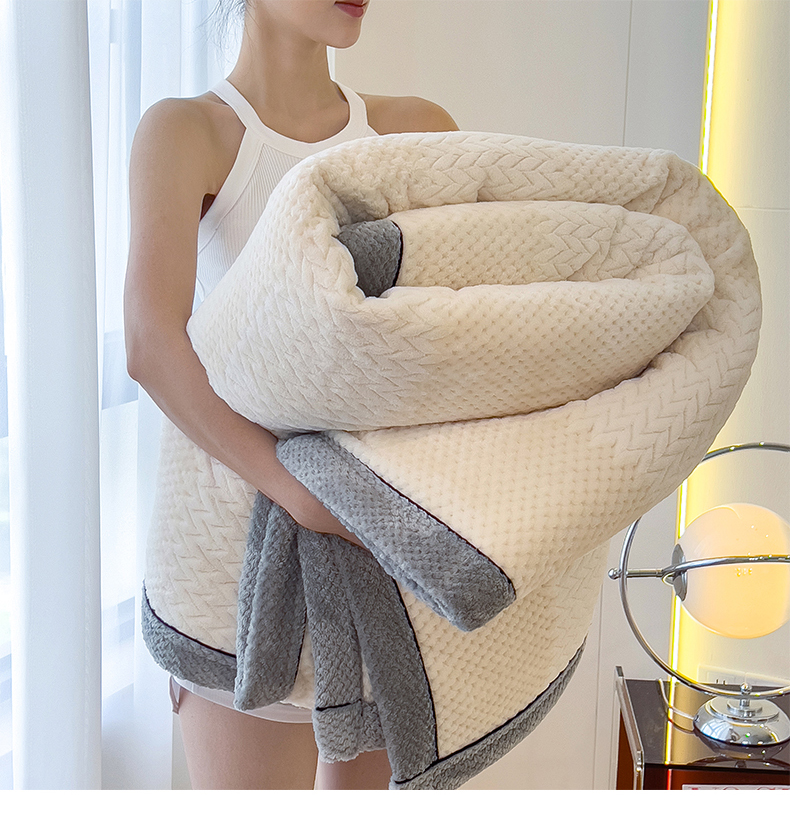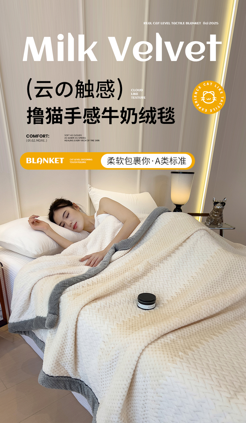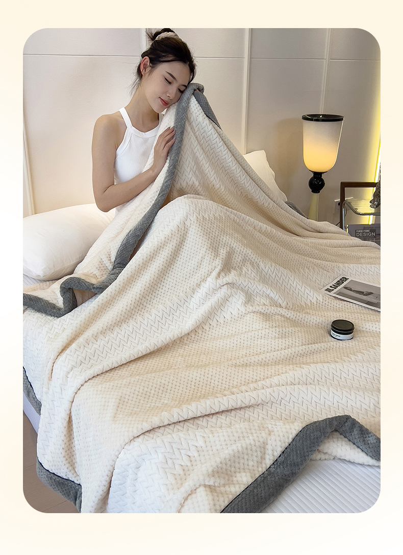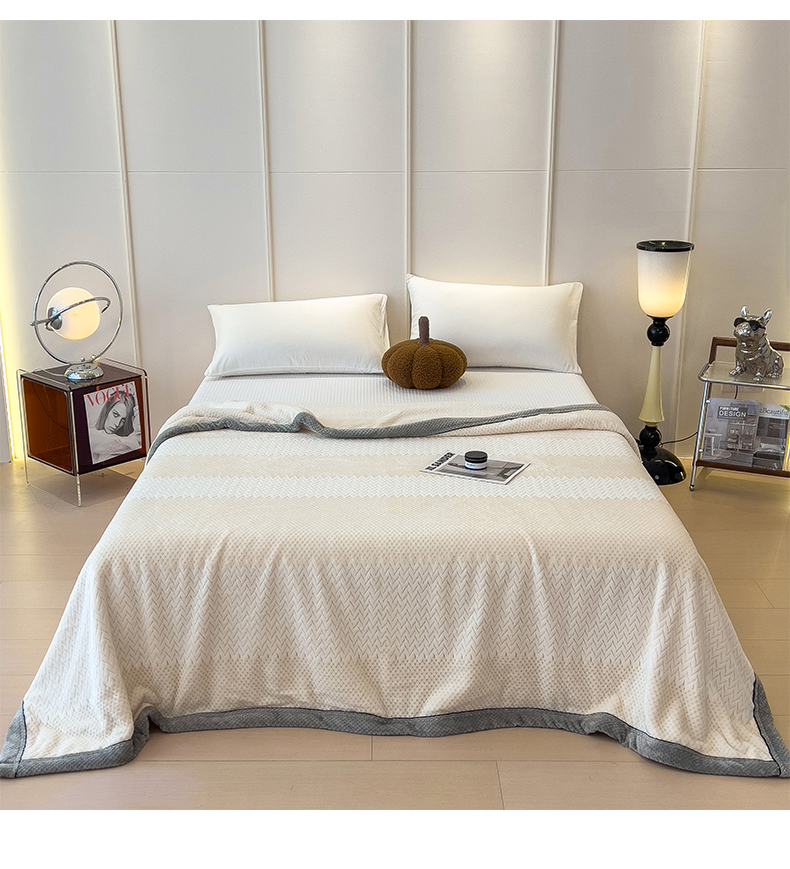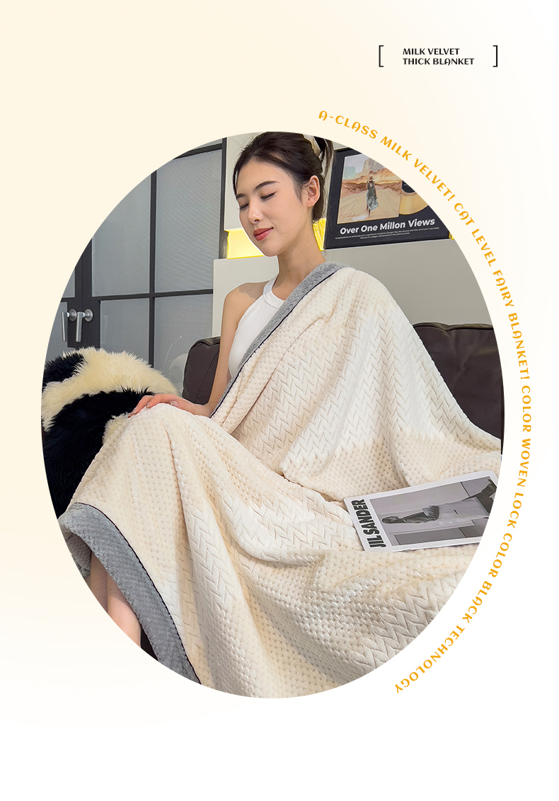 世纪绒品 2025新款A类撸猫色织牛奶绒多功能毛毯 艾森-米白