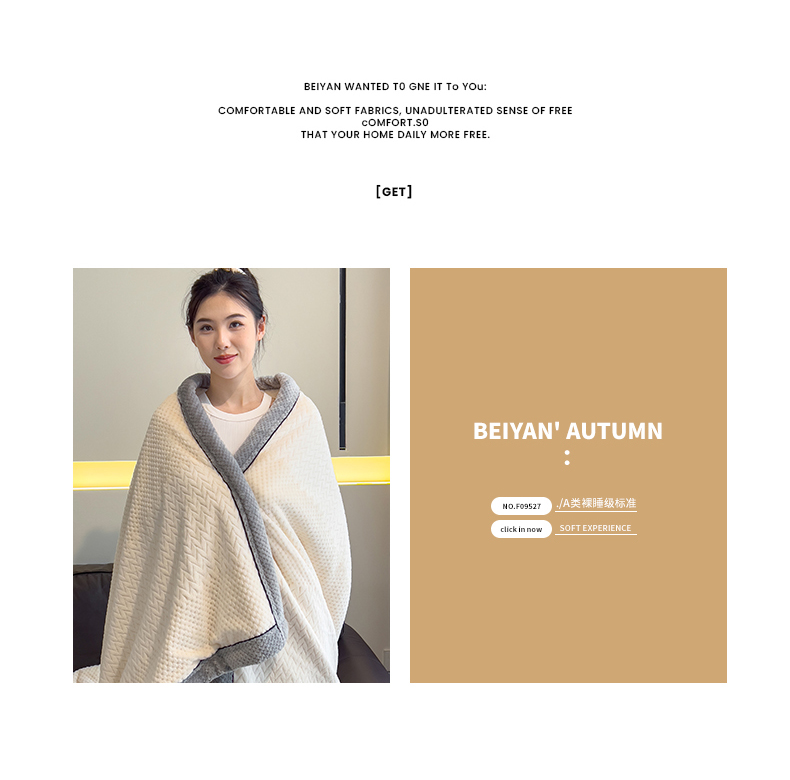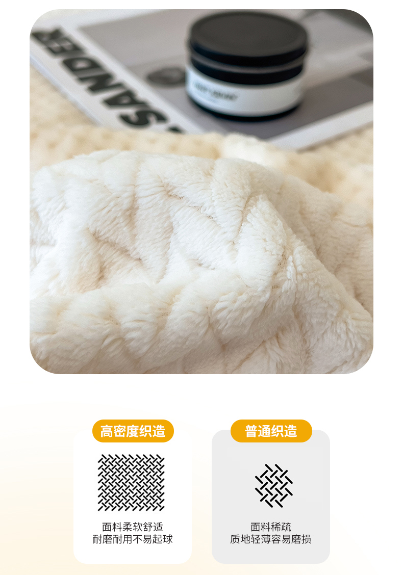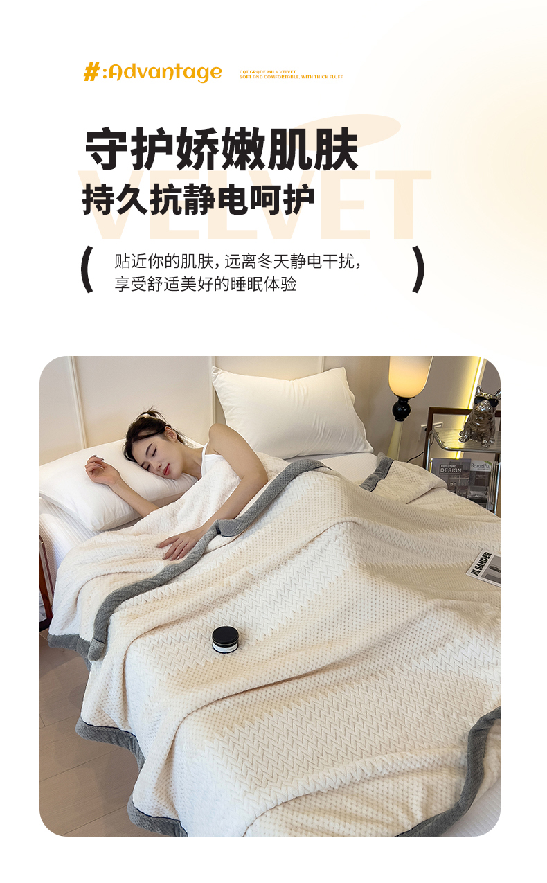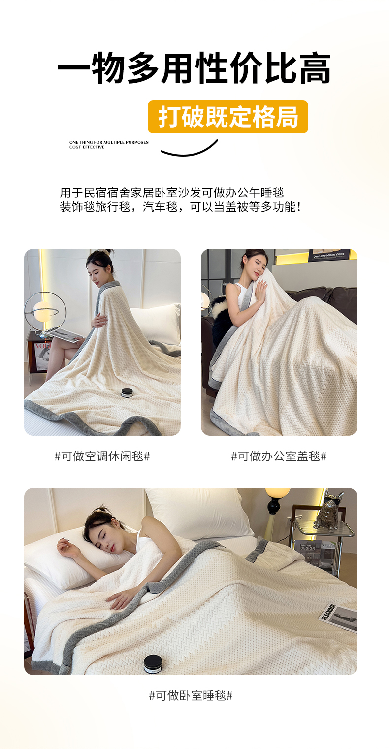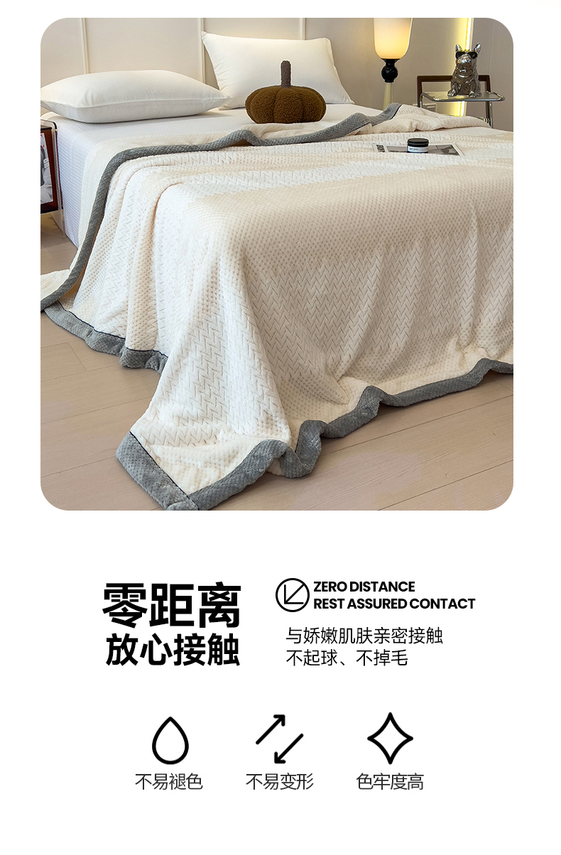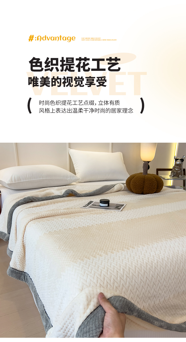 商品名称:世纪绒品 2025新款A类撸猫色织牛奶绒多功能毛毯 艾森-米白
