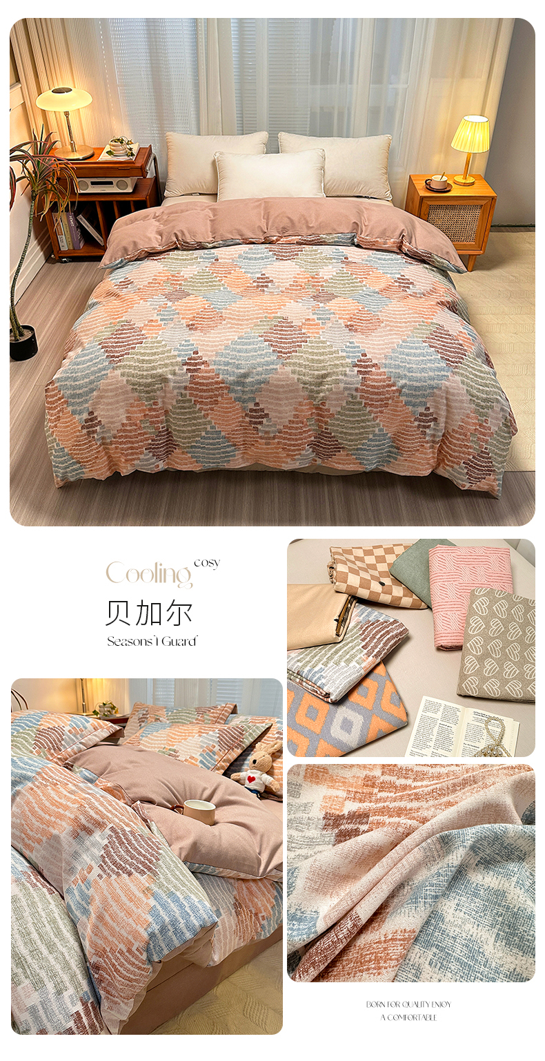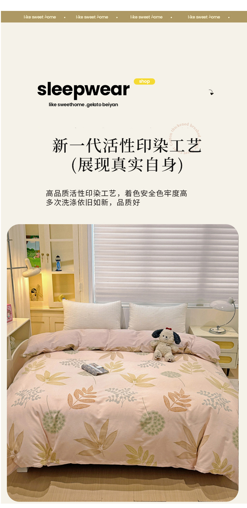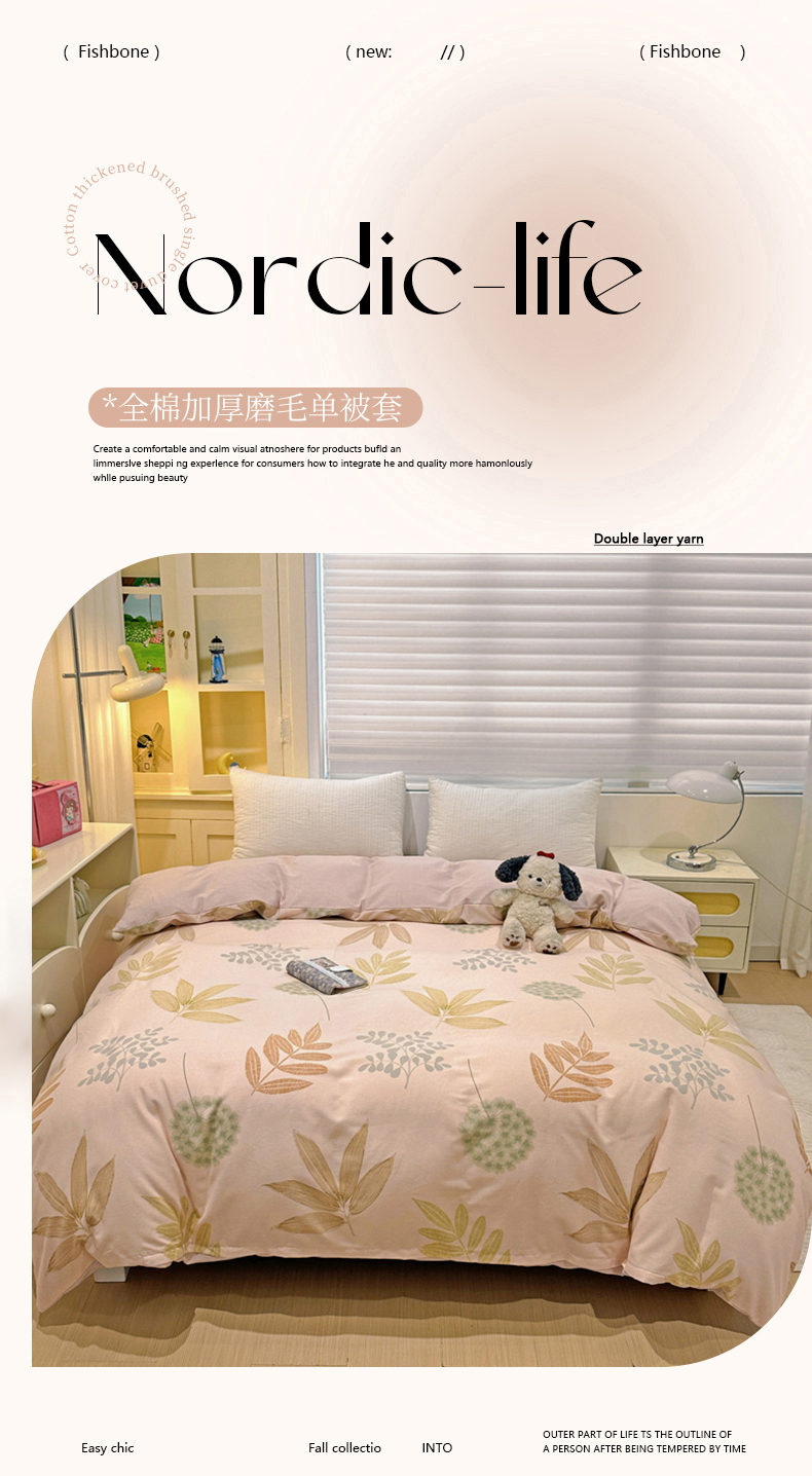 • 91家纺网 家纺一手货源 找家纺 卡普家居 2025新款全棉纯棉磨毛加厚单品系列-被套单件单被套 芊芊叶语