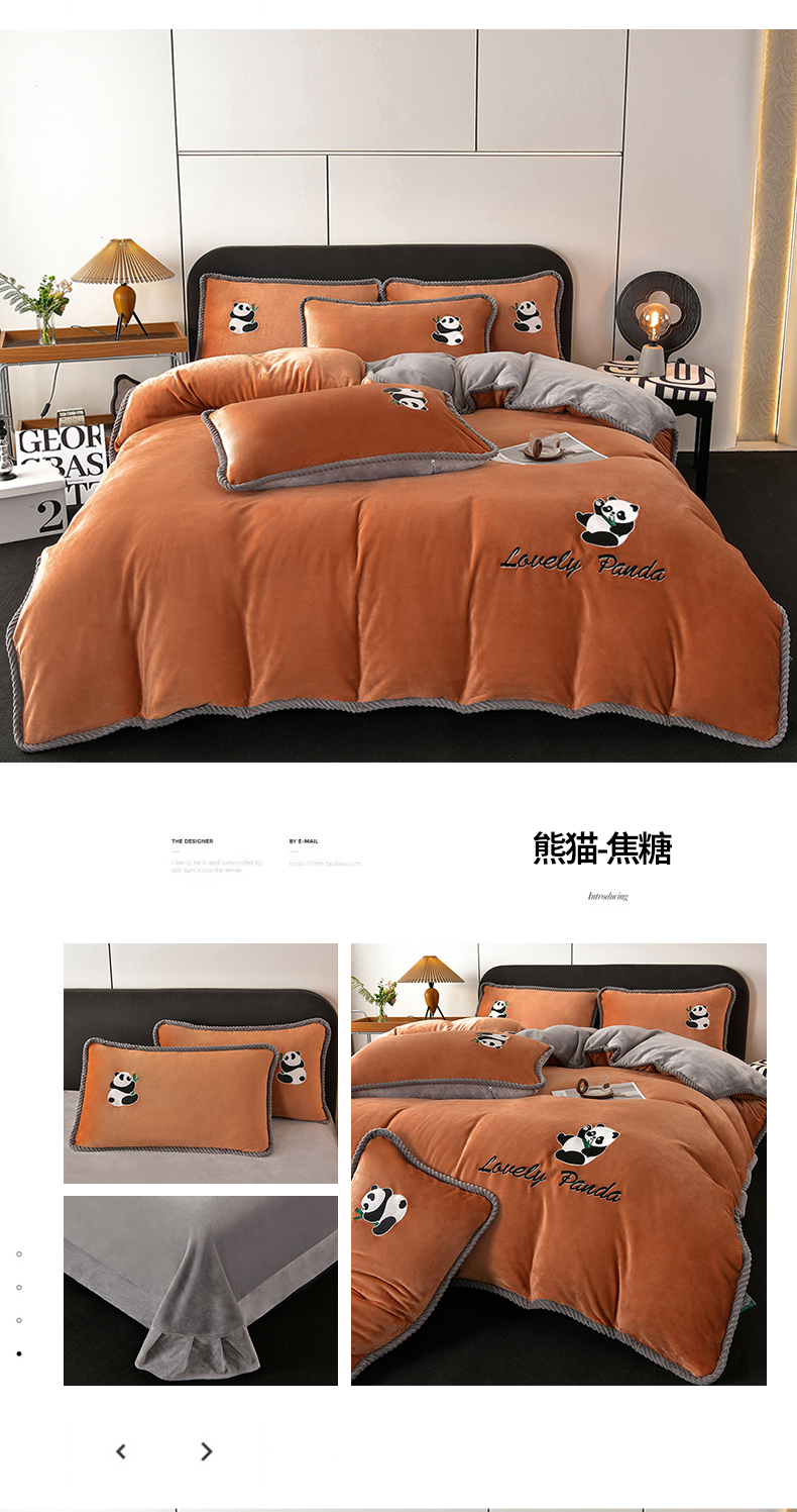 商品名称:妮恒美 2025新款加厚牛奶绒刺绣四件套-熊猫系列 熊猫-焦糖