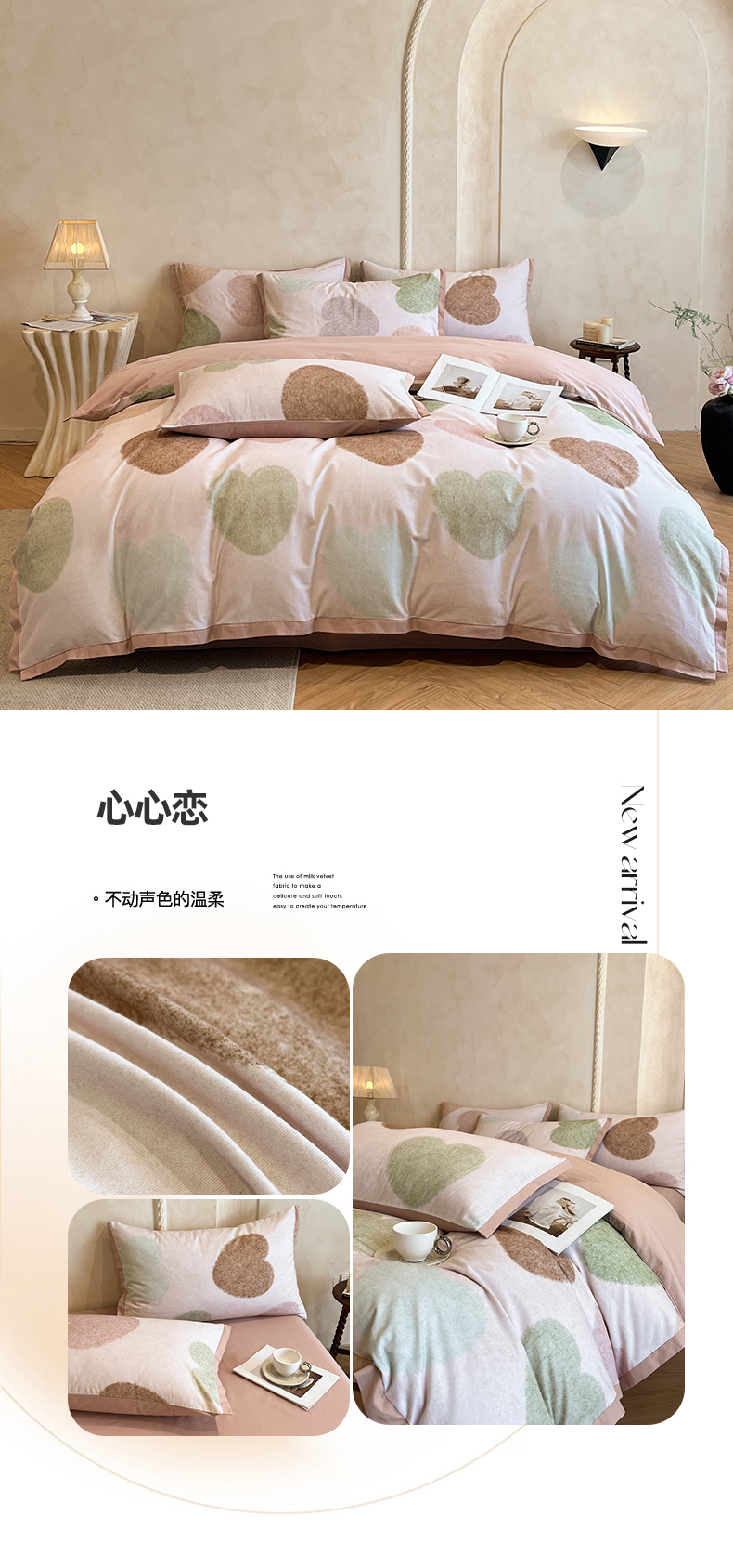 当前位置: 91家纺网 > 商品网购 > 床品套件 > 四件套 > 普通磨毛四件套 > 柠馨2025全棉磨毛印花四件套精致小边款 心心恋