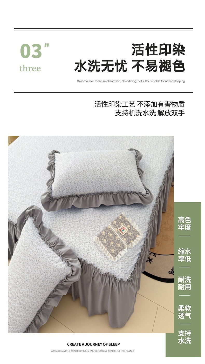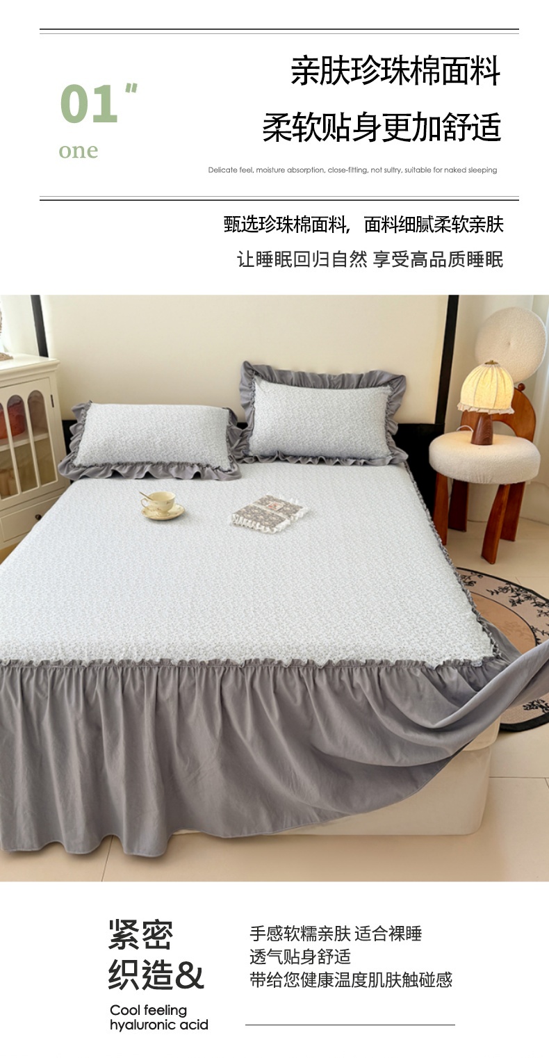 商品名称:圣比熊 2025新款水洗珍珠棉单件床裙双层纱床垫保护罩三件套 宁静花园