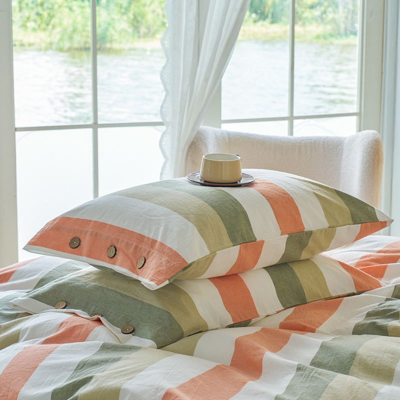 (总)贝尔 PELLHOME 全棉纽扣色织水洗棉格子四件套单品系列-单枕套(可抖音代发)