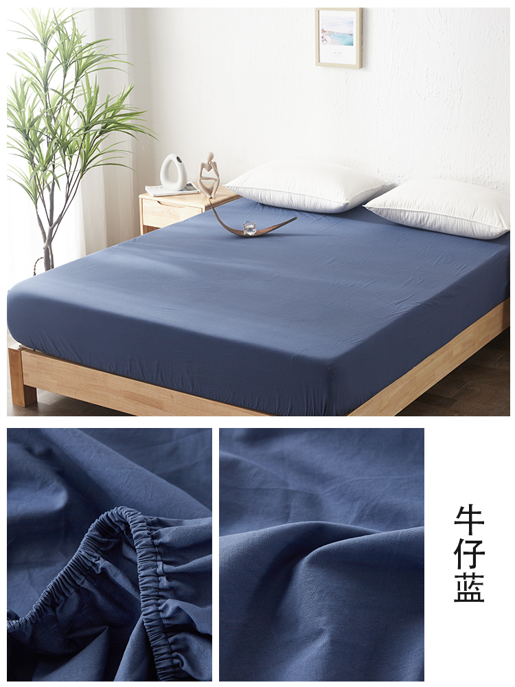 贝尔 PELLHOME 日式全棉纯棉水洗棉床笠床罩男士简约蓝北欧床垫保护防滑固定单件春节不打烊 牛仔蓝-