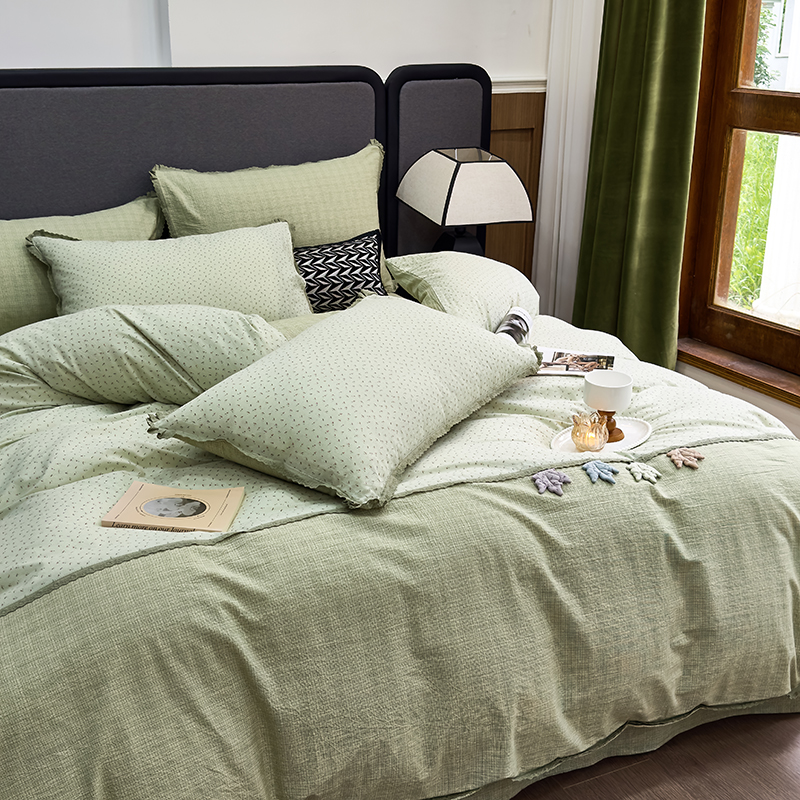 贝尔 2025新款纯色高克重牛奶绒刺绣四件套-羽魅 羽魅-浅绿,羽魅-浅绿