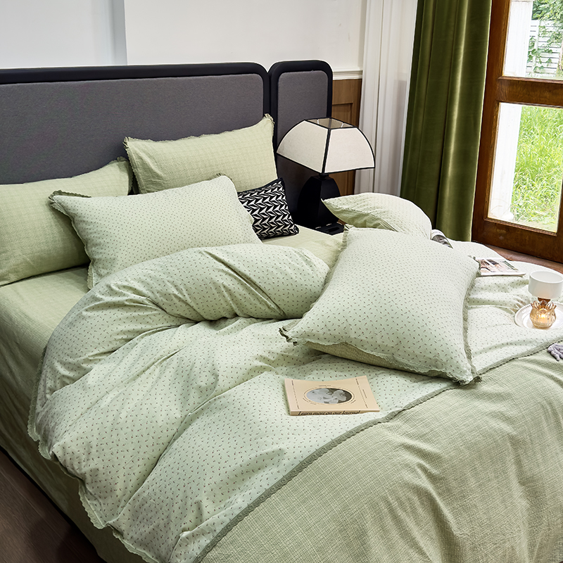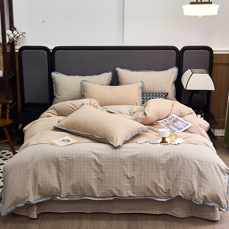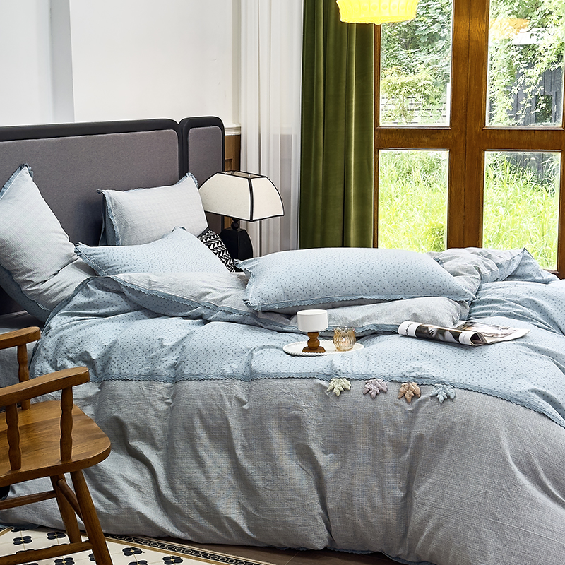 (总)贝尔 2025新款urban classic枫叶全棉色织提花四件套-花边款