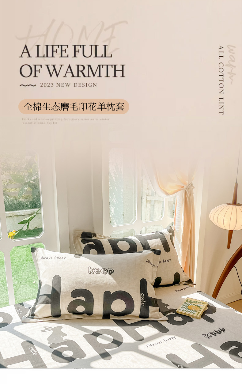 商品名称:眠博士 2025新款全棉混纺生态磨毛印花单枕套 磨毛枕套-兔先生