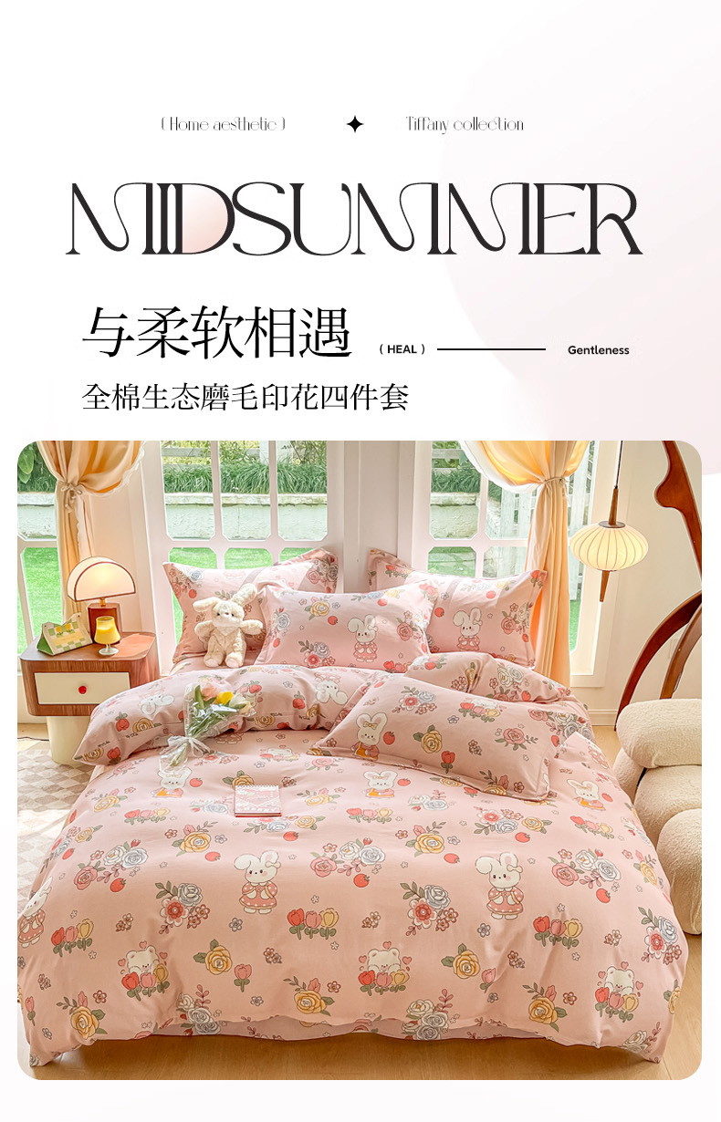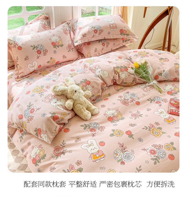 当前位置: 91家纺网 > 商品网购 > 床品套件 > 四件套 > 普通磨毛四件套 > 眠博士 2025新款全棉混纺生态磨毛印花四件套 磨毛四件套-兔姑娘