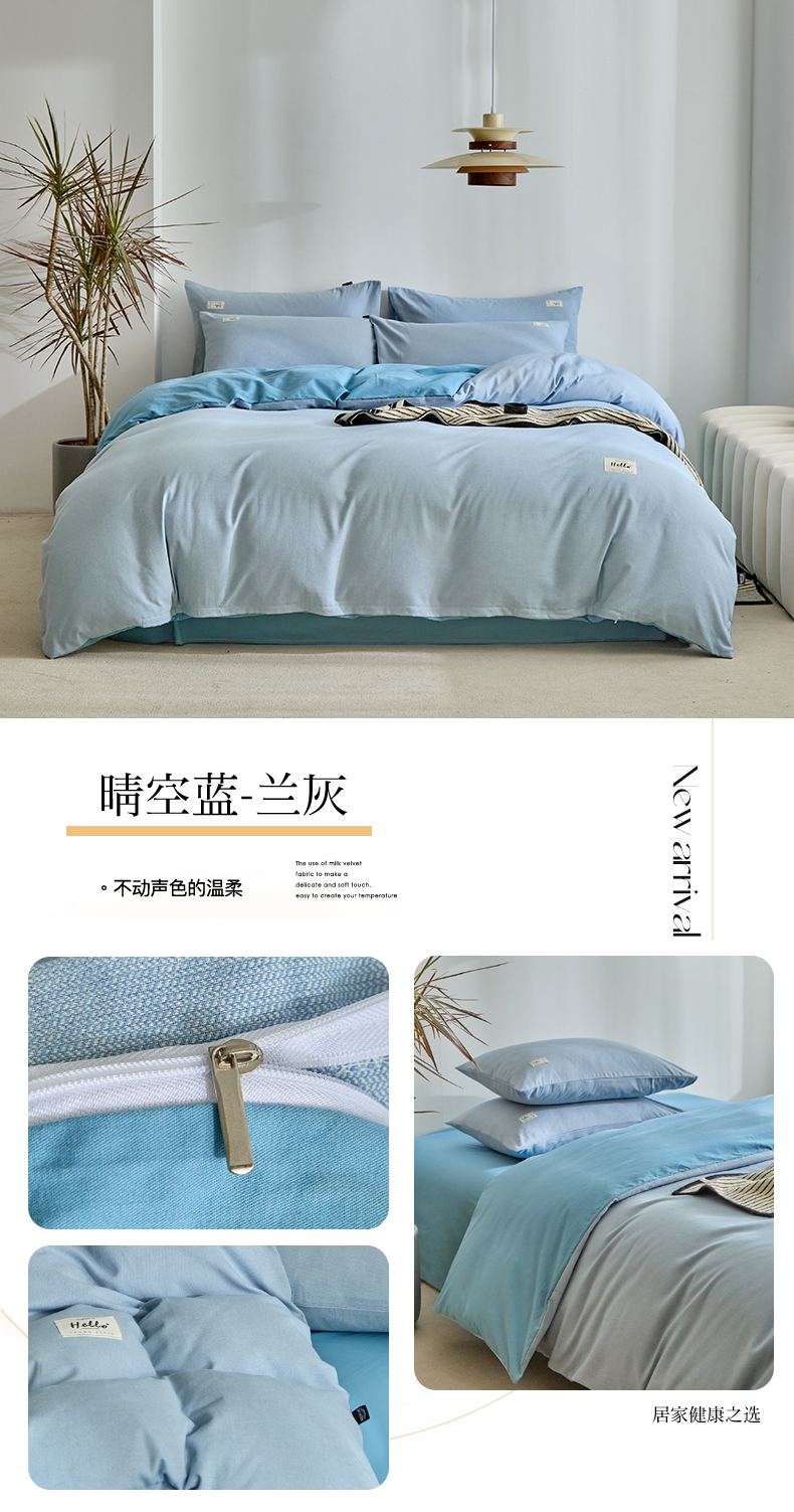 当前位置: 91家纺网 > 商品网购 > 床品套件 > 四件套 > 磨毛活性四件套 > 贝尔 2025新款双拼全棉纯色素色色织磨毛加厚四件套 牛油果绿-山灰