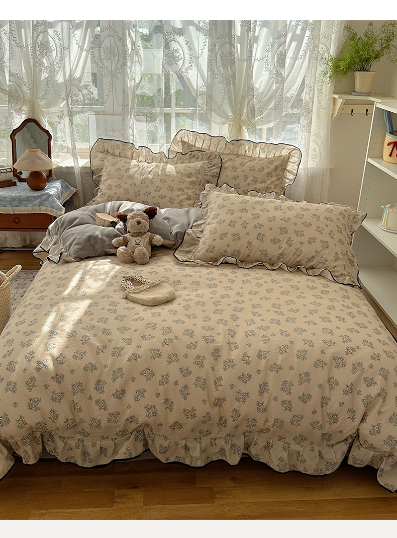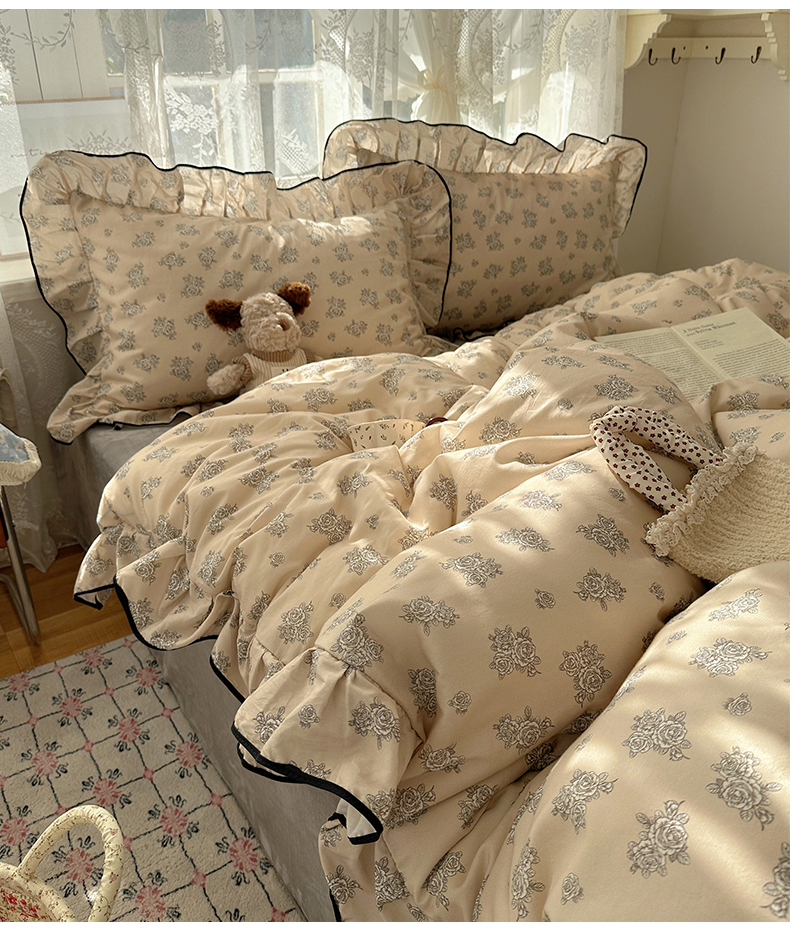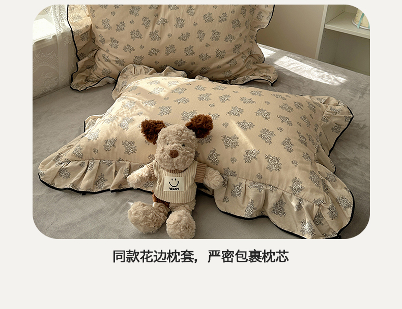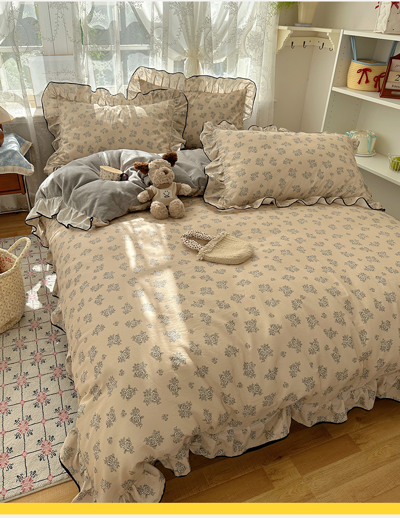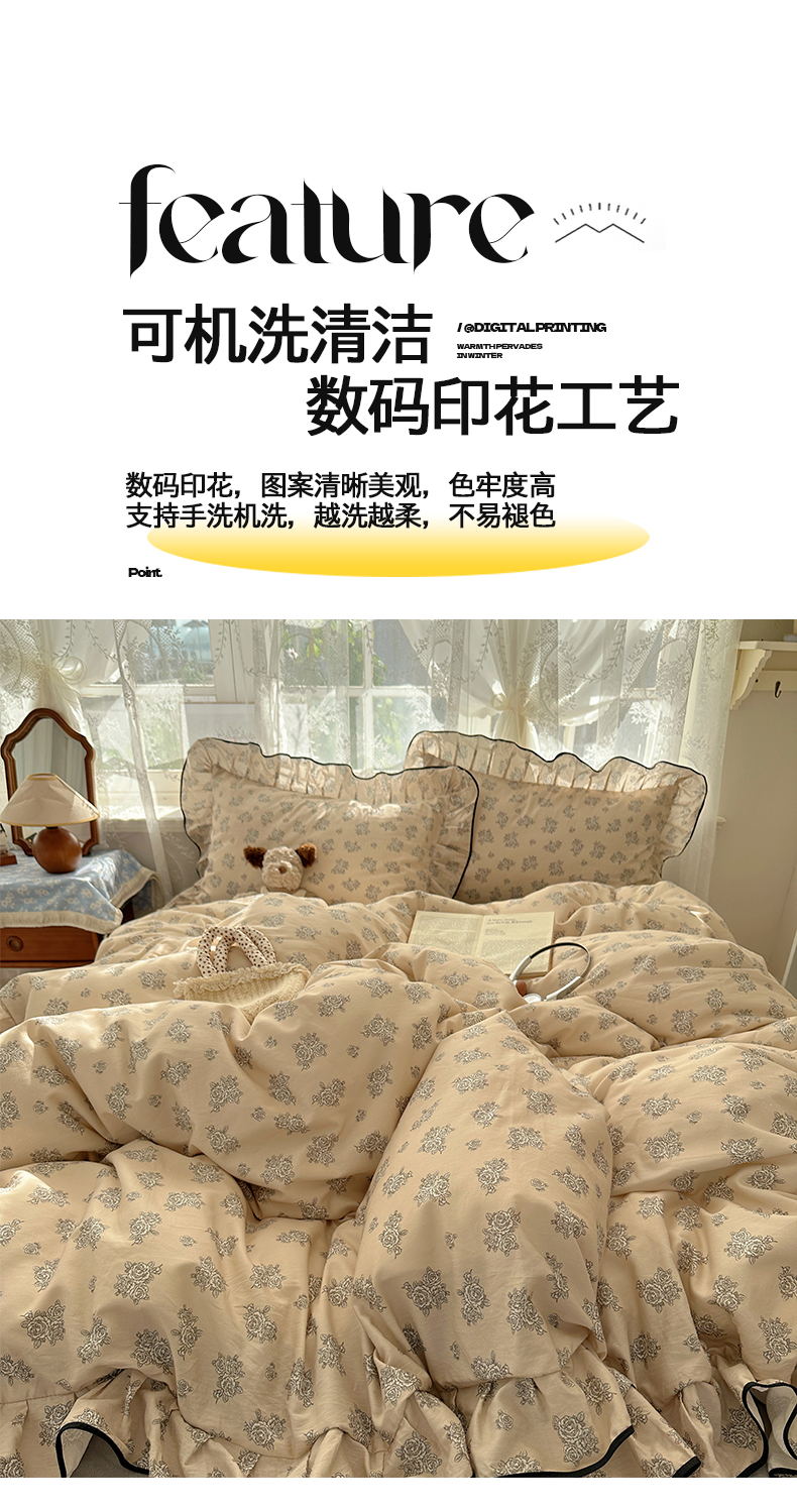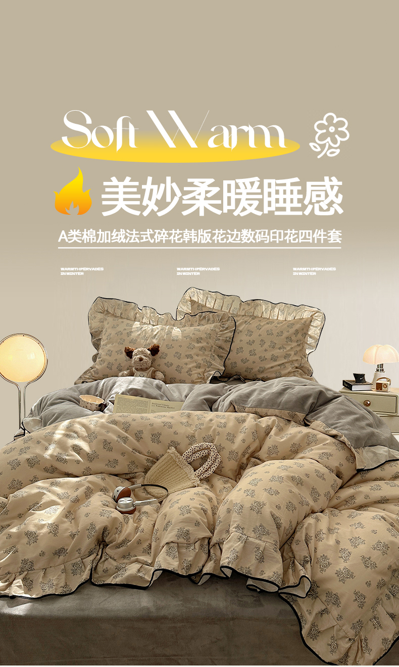 商品名称:桃子家居 2025新款A类纯棉数码印花法式碎花棉加绒韩版花边碎花加厚牛奶绒四件套 棉加绒-花边清香