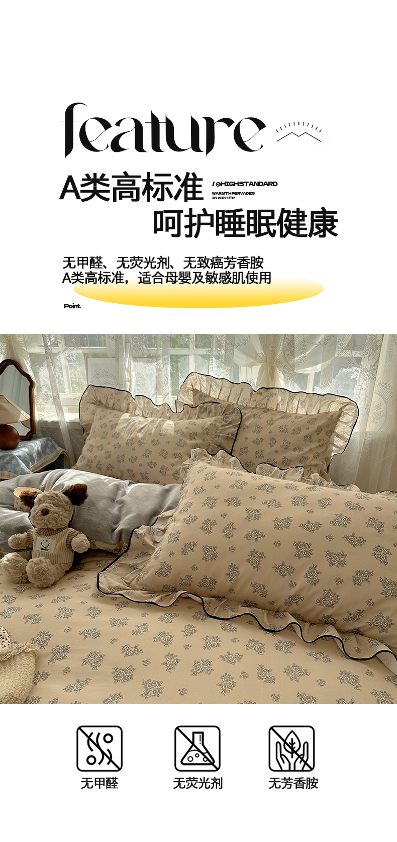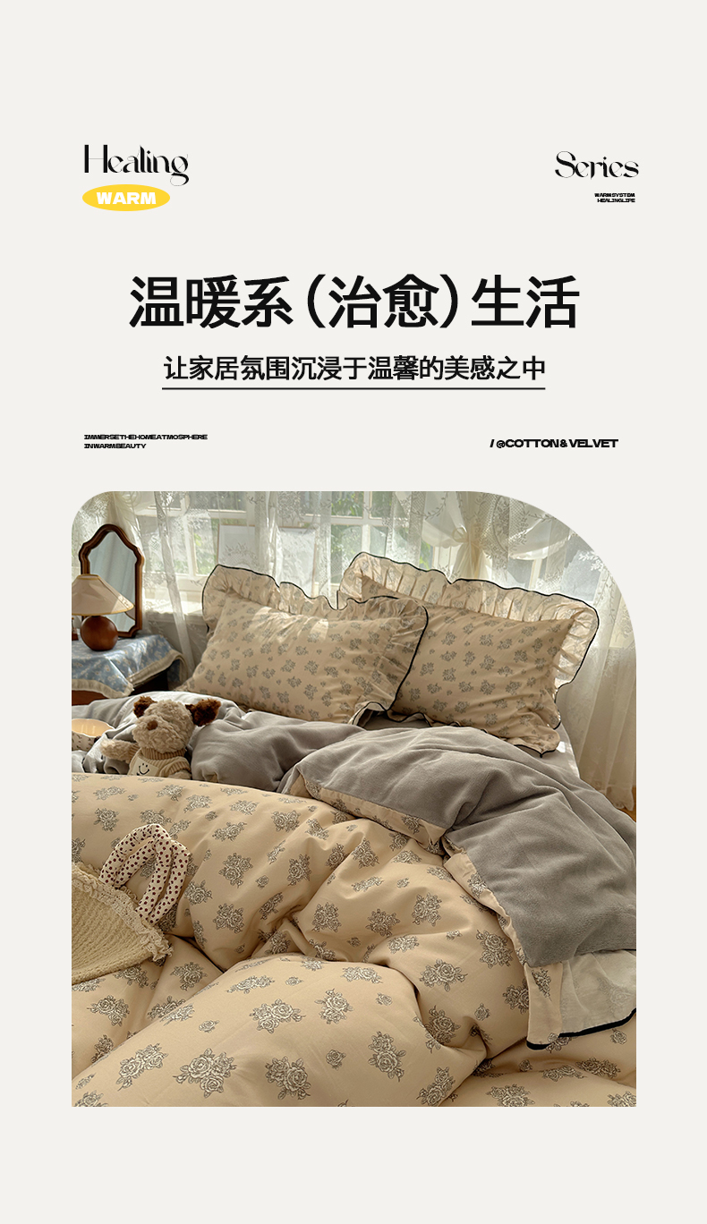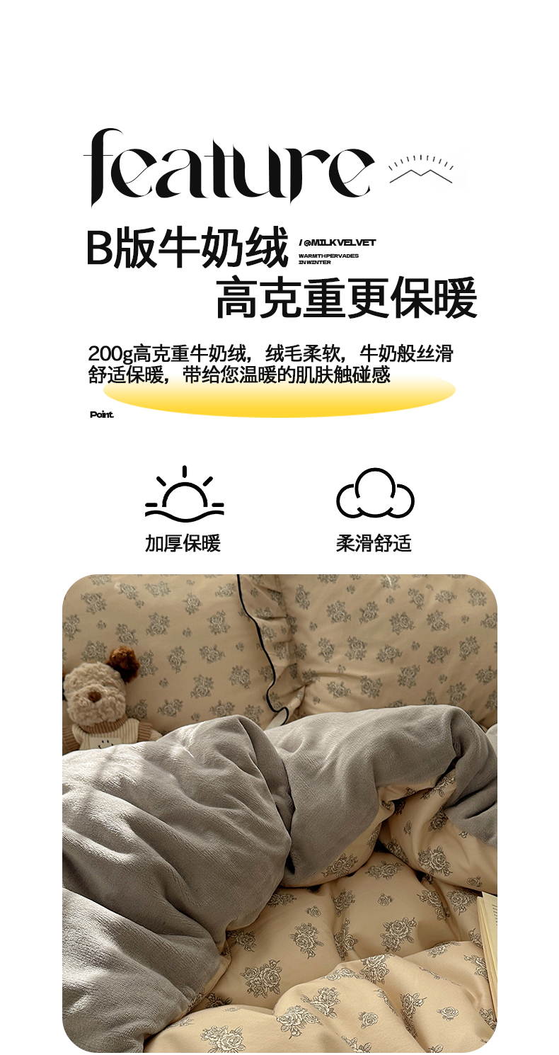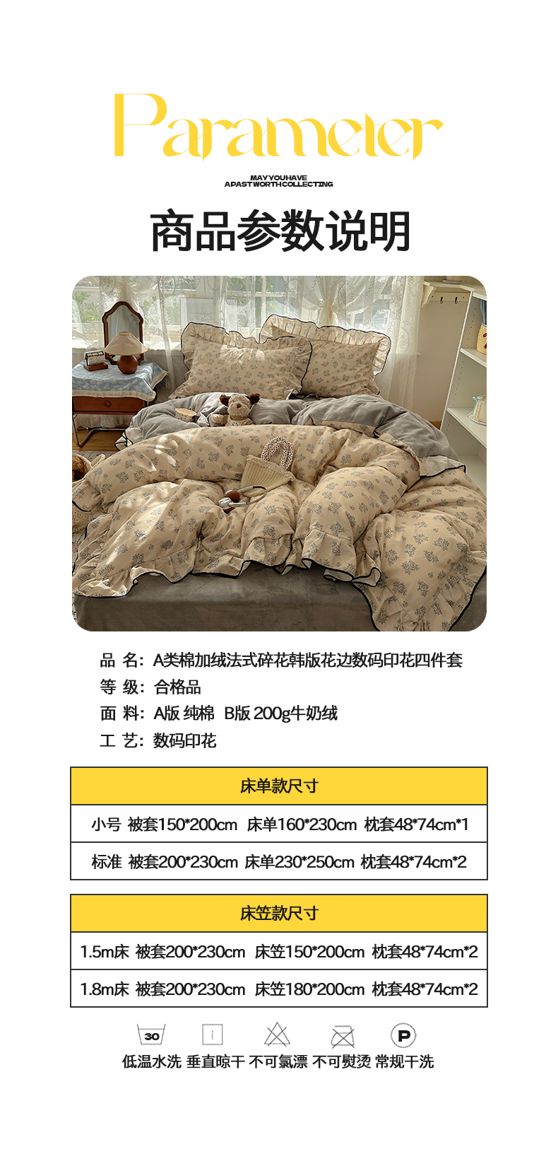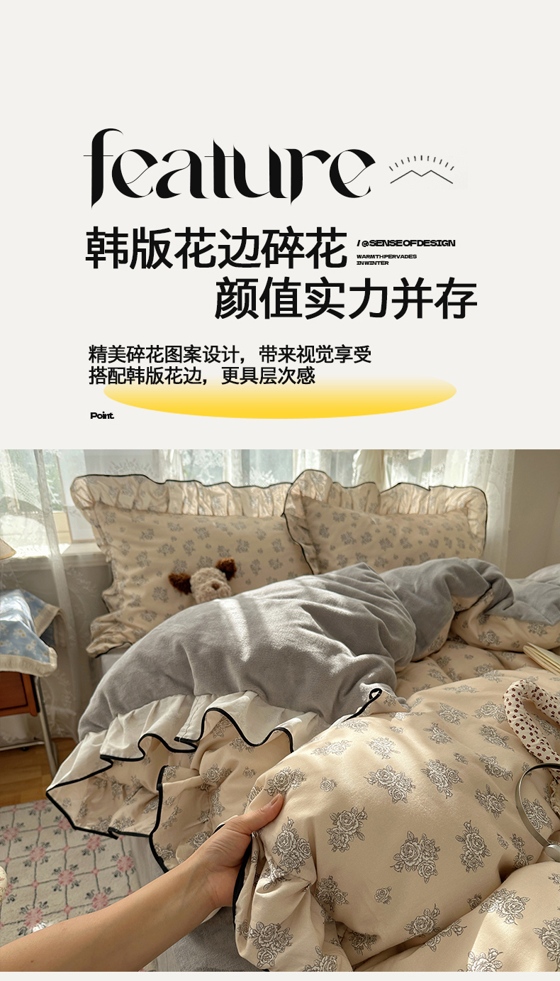 商品名称:桃子家居 2025新款A类纯棉数码印花法式碎花棉加绒韩版花边碎花加厚牛奶绒四件套 棉加绒-花边清香