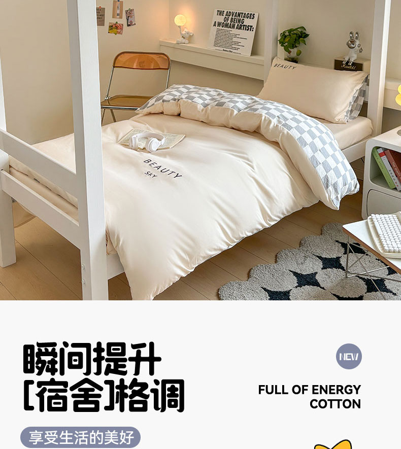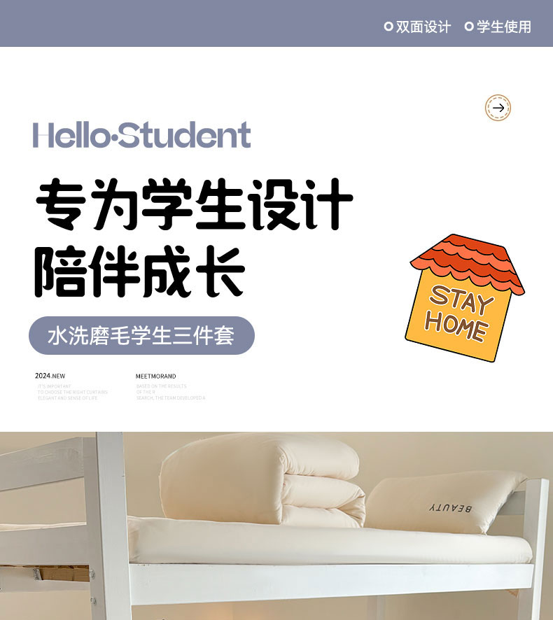 当前位置: 91家纺网 > 商品网购 > 床品套件 > 三件套 > 麦空家居 2025新款 学生季 抗菌水洗棉刺绣学生三件套 - 布丁系列 奶昔白