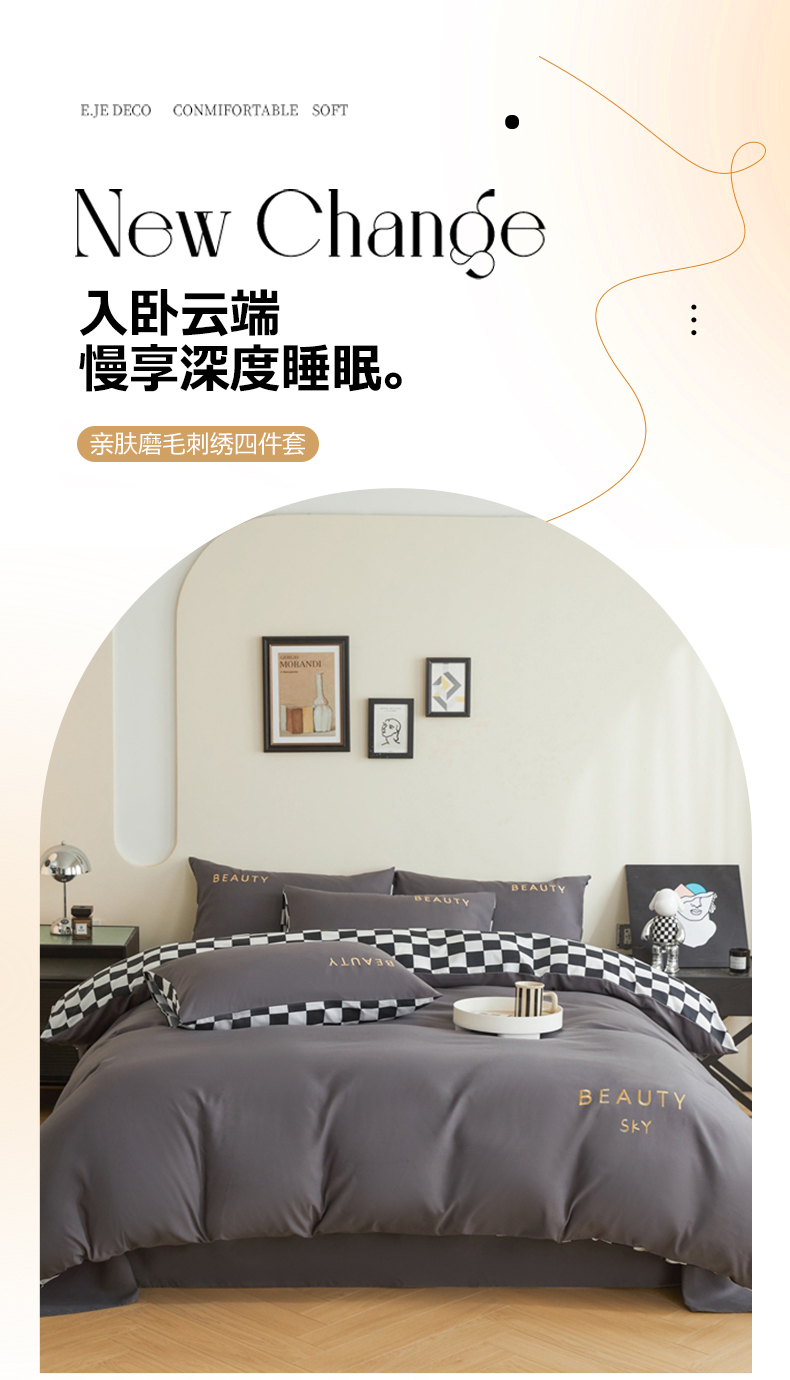 (总)麦空家居 2025新款水洗棉刺绣四件套-布丁(棋盘格),牛油果,奶昔白,爱马橙,宾利蓝,绅士灰,高山灰,奶油粉,天空兰
