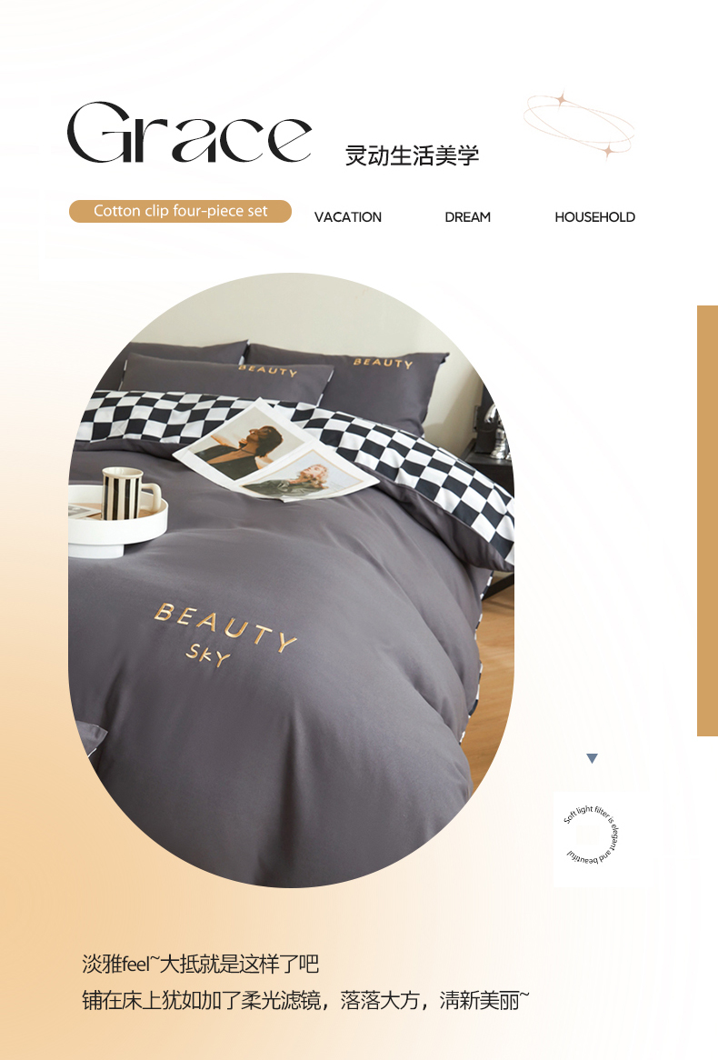 麦空家居 2025新款水洗棉刺绣四件套-布丁(棋盘格) 绅士灰