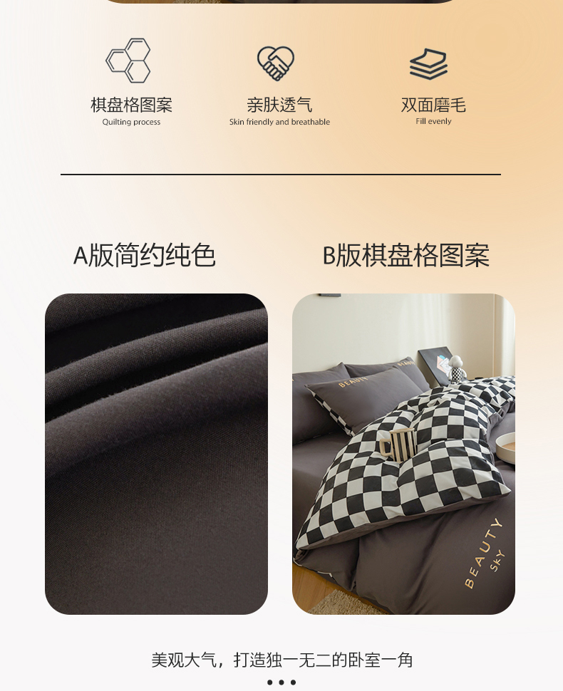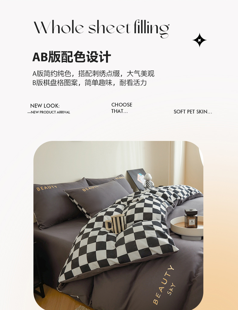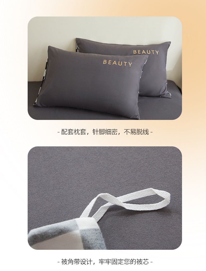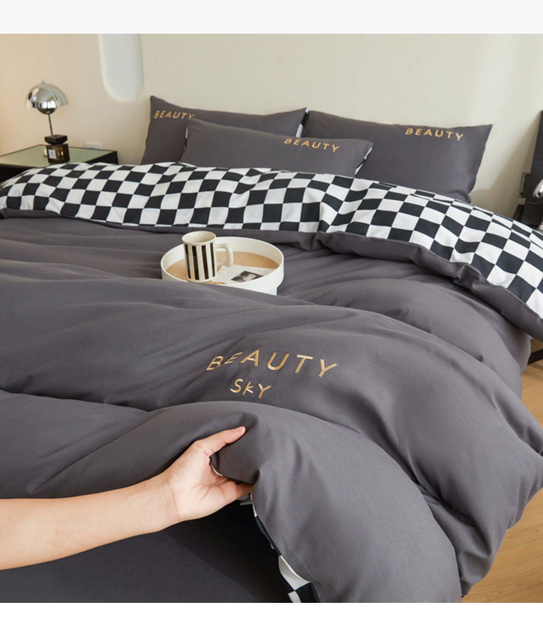 商品名称:麦空家居 2025新款水洗棉刺绣四件套-布丁(棋盘格) 绅士灰
