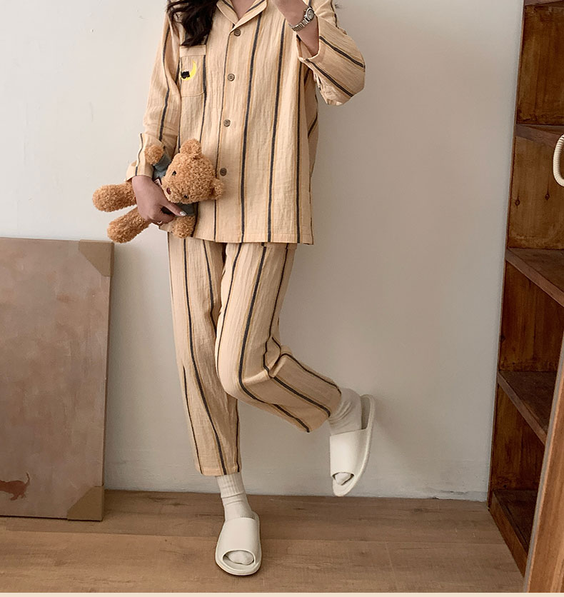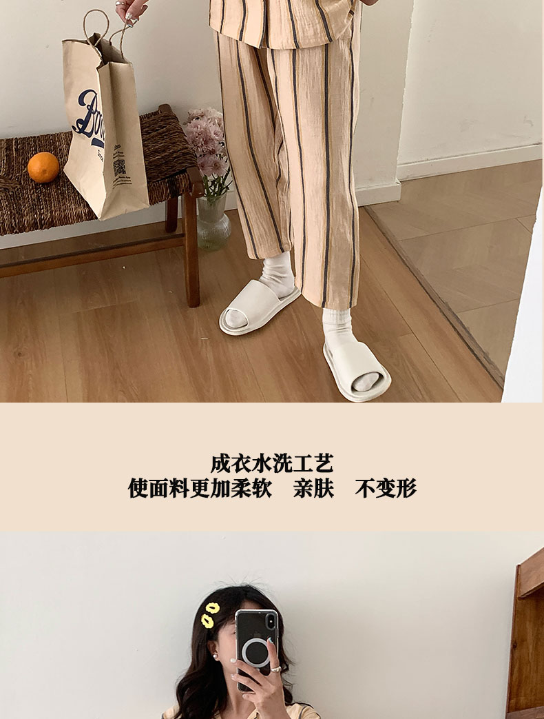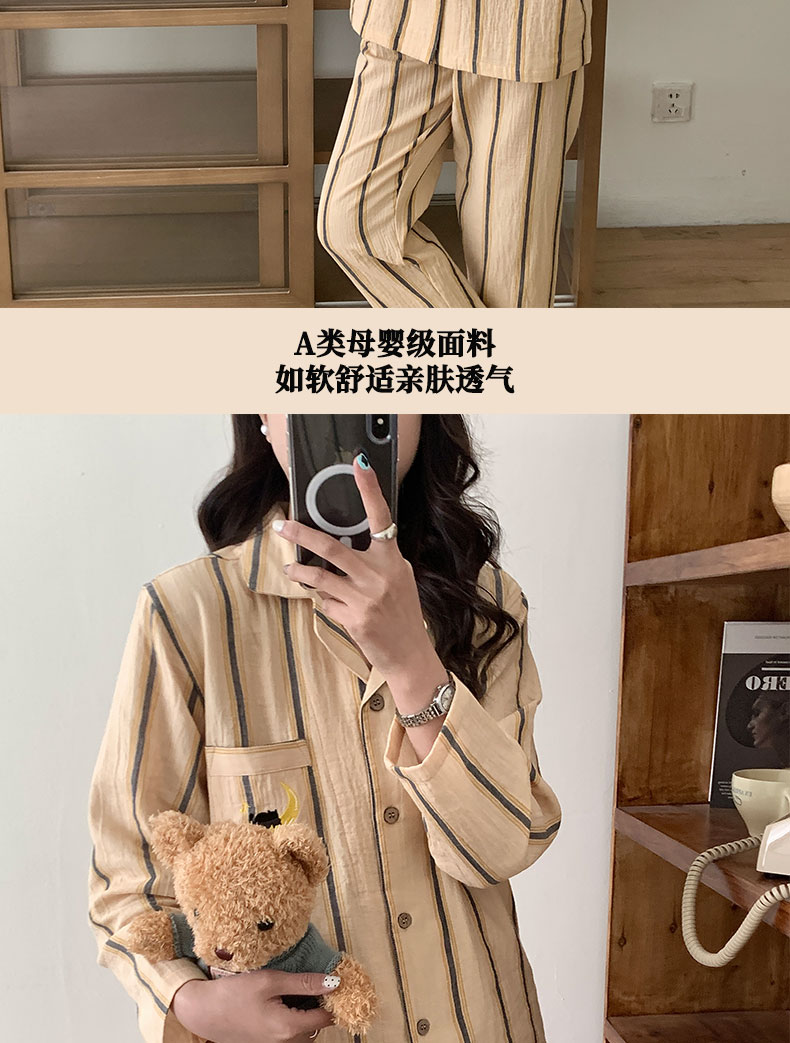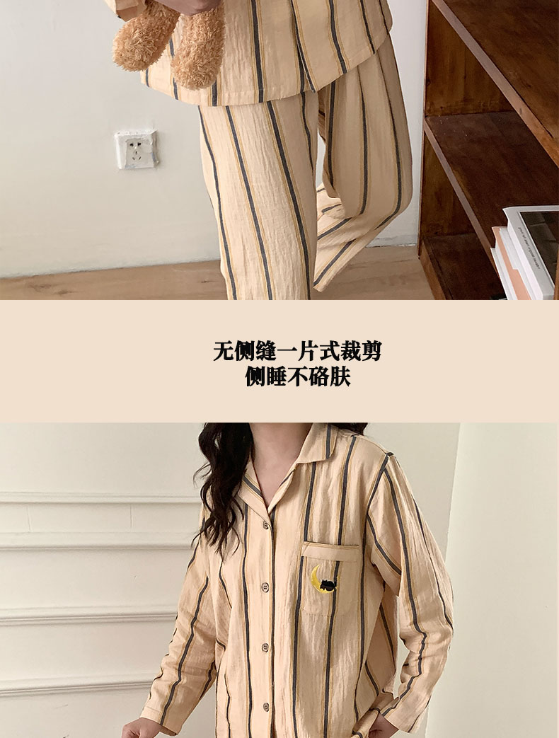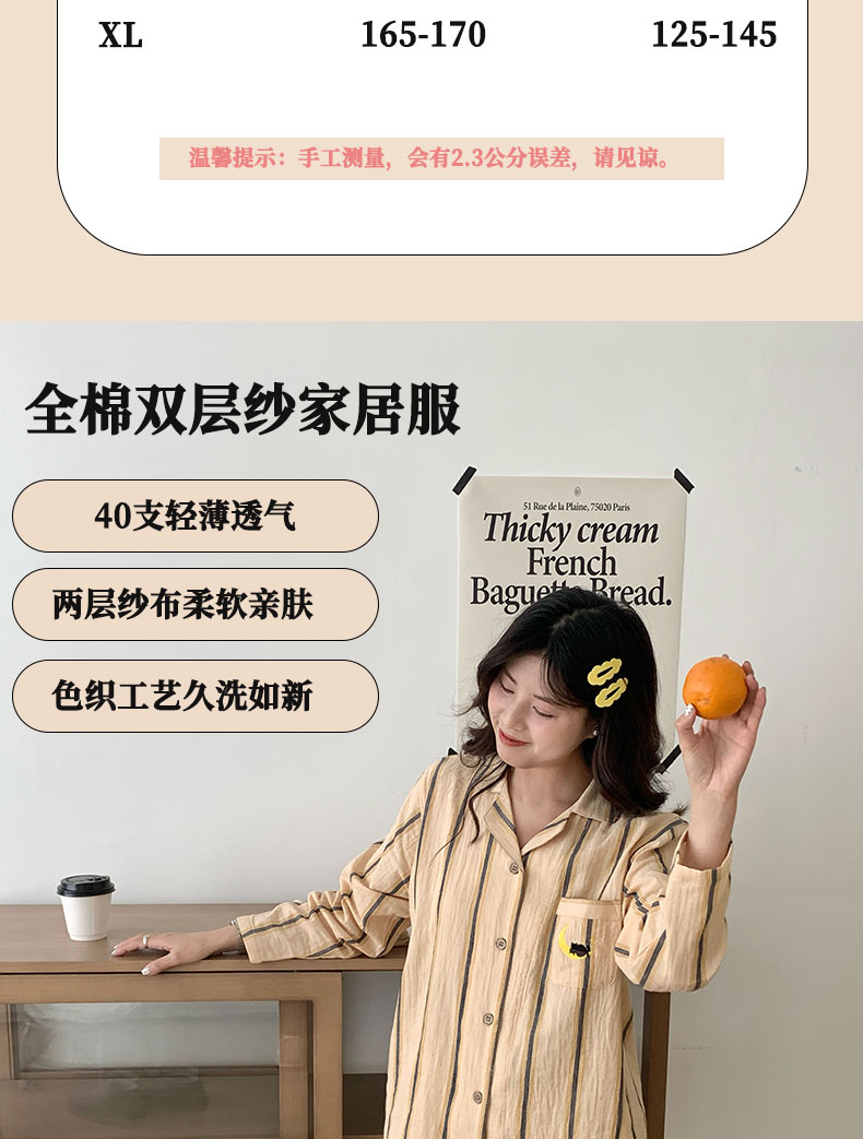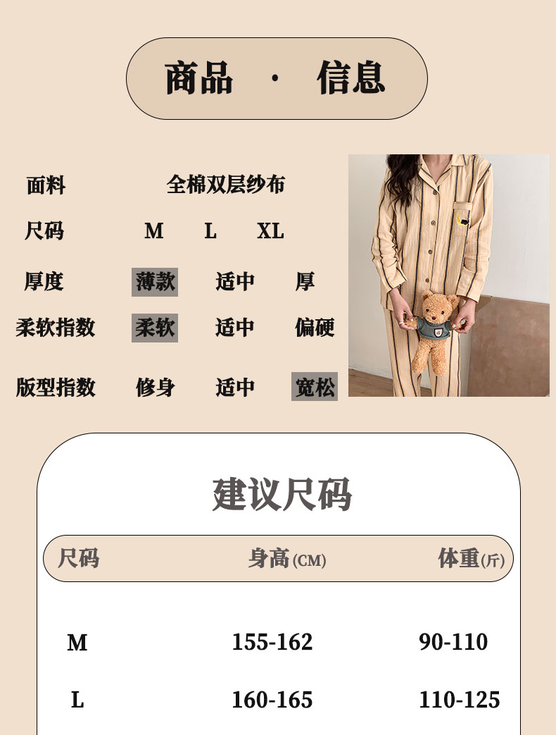 商品名称:(总)观月轩家纺 2025新款双层纱咖条纹家居服