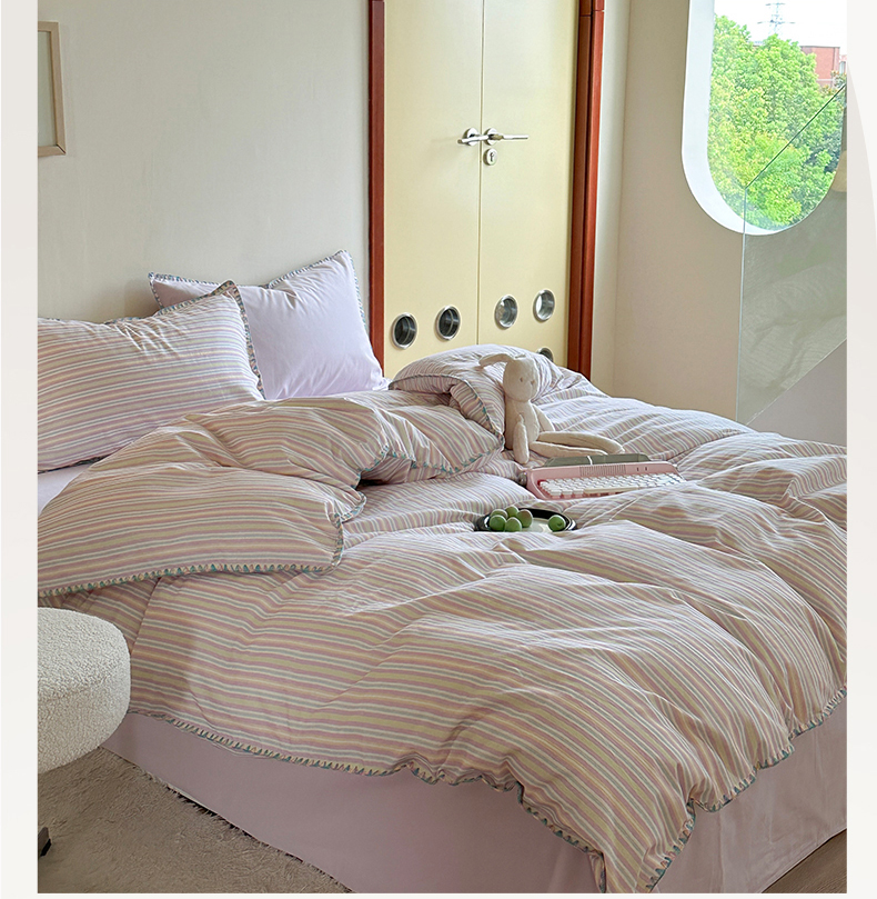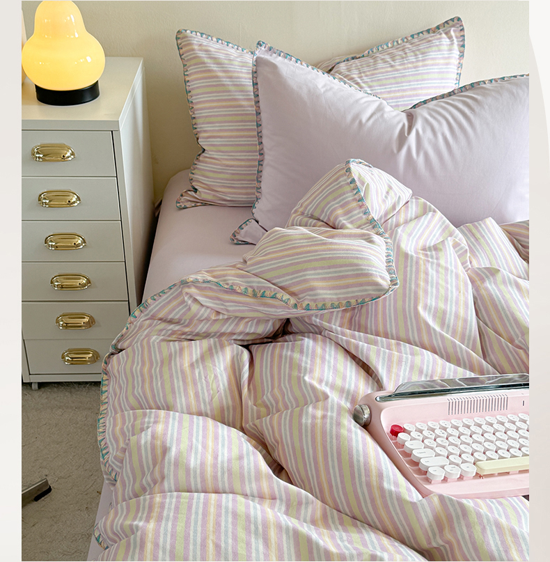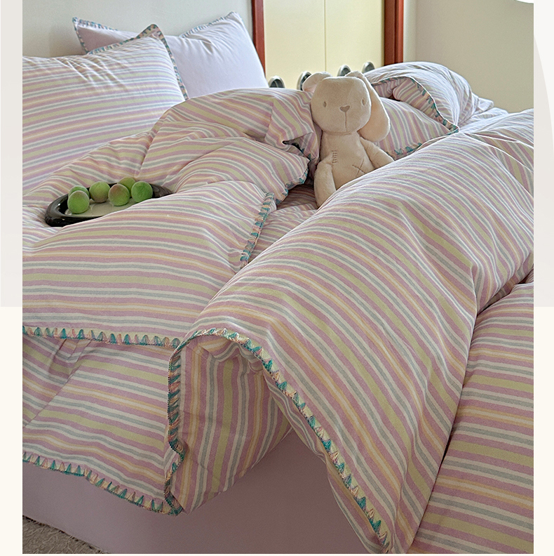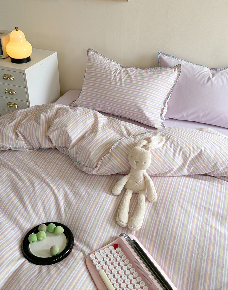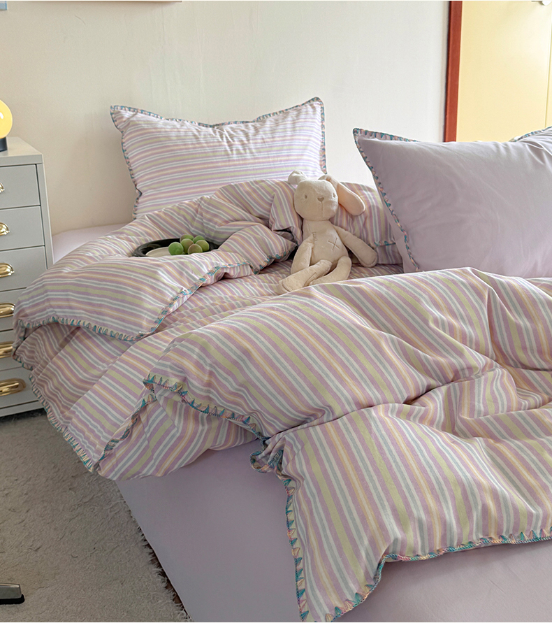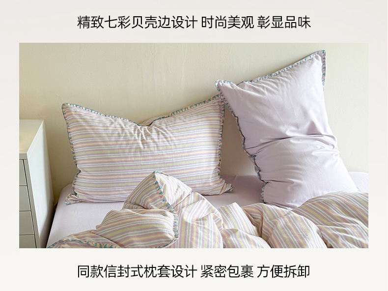 当前位置: 91家纺网 > 商品网购 > 床品套件 > 四件套 > 普通磨毛四件套 > 艾莱家纺 2025新款七彩贝壳全棉加厚超柔磨毛四件套 幻珊-紫细条