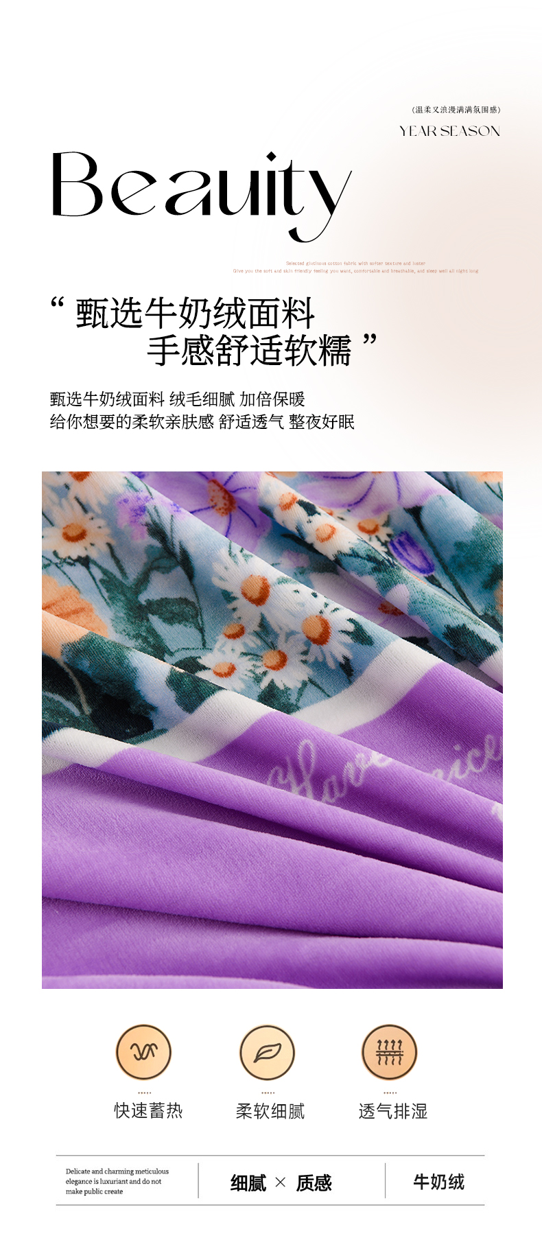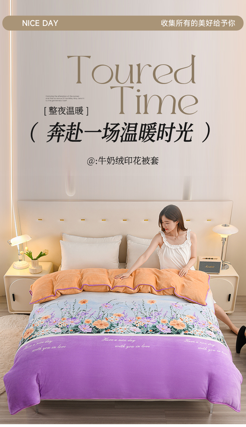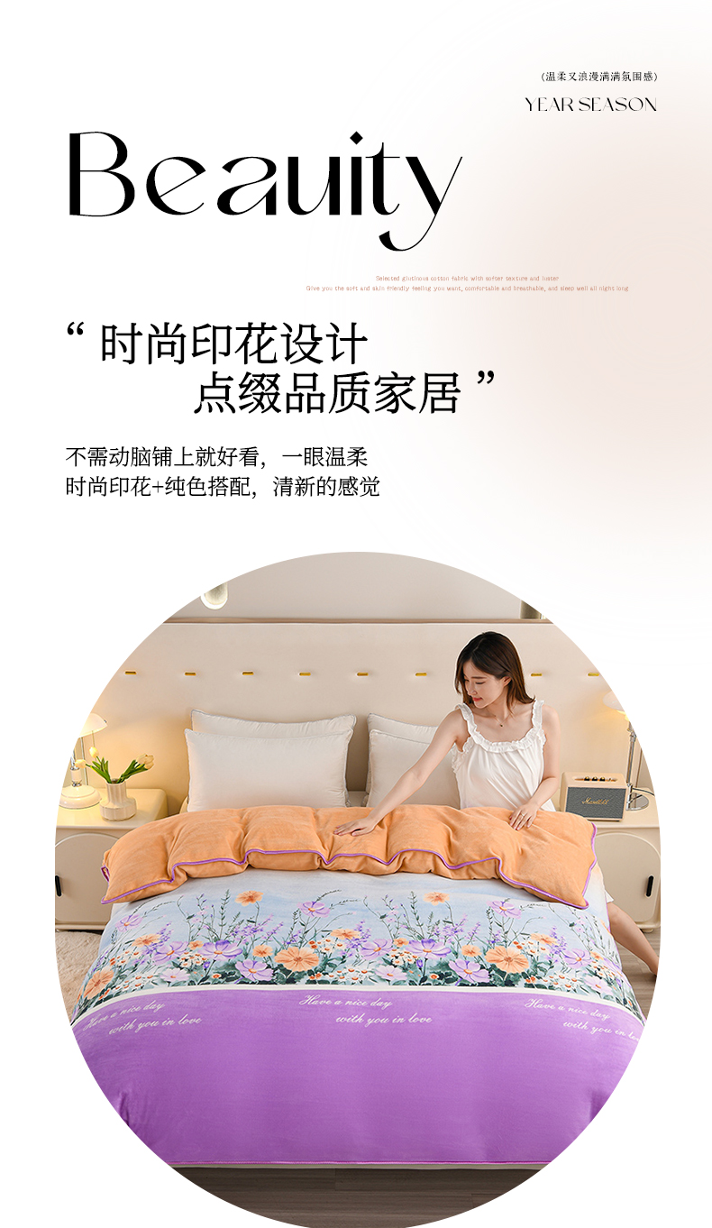 商品名称:晚静 2025新牛奶绒印花单被套法莱绒金貂被套单件180克全尺寸被套 花香
