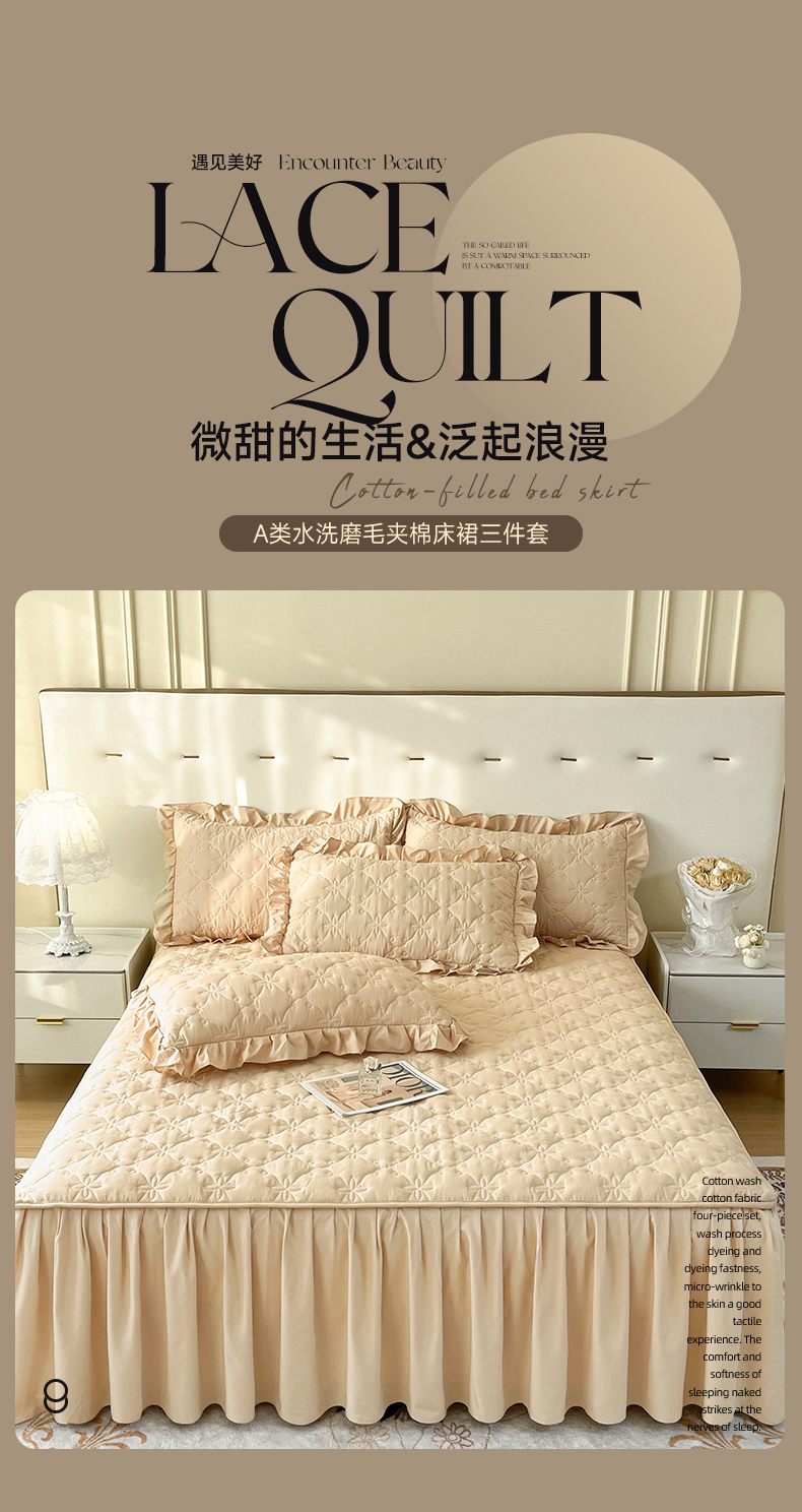 鼎丰家纺 2025新款水洗磨毛夹棉床裙套件-曼可系列 曼可-天蓝