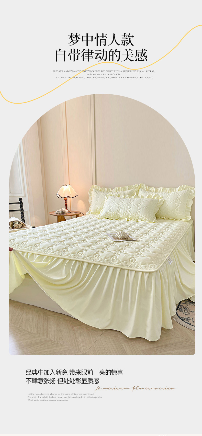 • 91家纺网 家纺一手货源 找家纺 (总)鼎丰家纺 2025新款皱皱纱双层花边夹棉床裙单床裙床裙单品-梦想系列,梦想-奶油黄,梦想-嫩绿,梦想-樱花粉,梦想-浅玉,梦想-浅豆沙,梦想-浅蓝