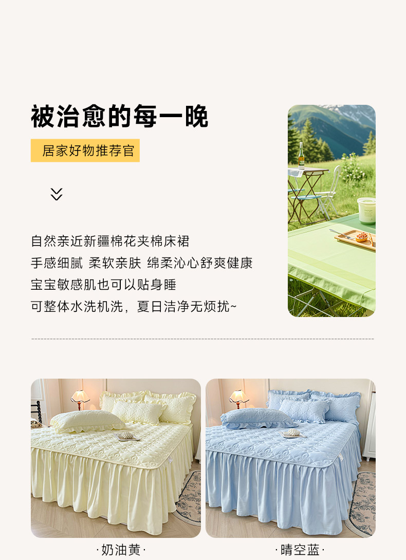 • 91家纺网 家纺一手货源 找家纺 鼎丰家纺 2025新款-100%新疆棉花夹棉床裙 100%新疆棉花床裙-晴空蓝
