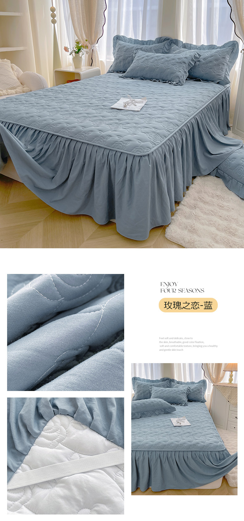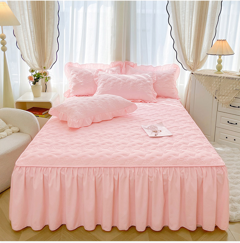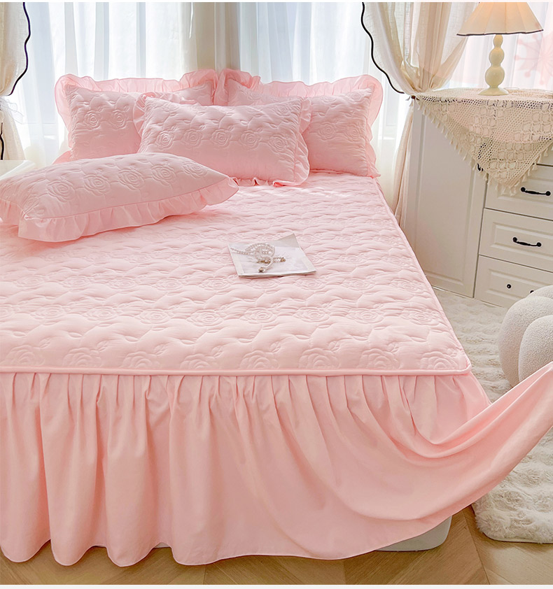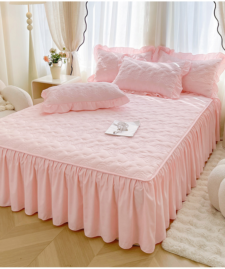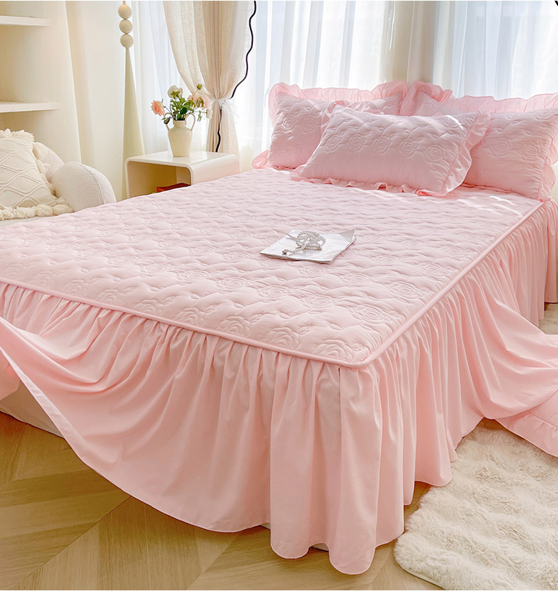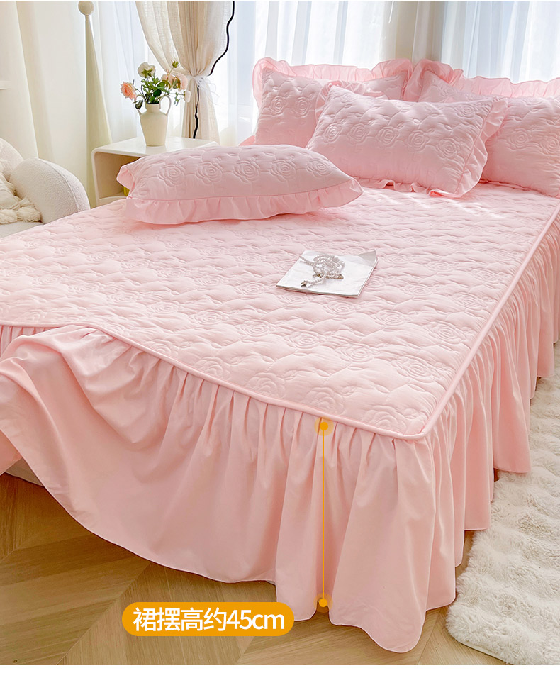 商品名称:鼎丰家纺 2025新款纯色夹棉床裙-玫瑰之恋 玫瑰之恋-粉