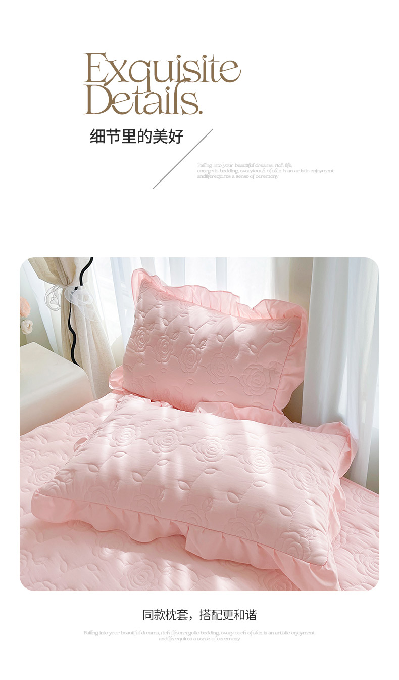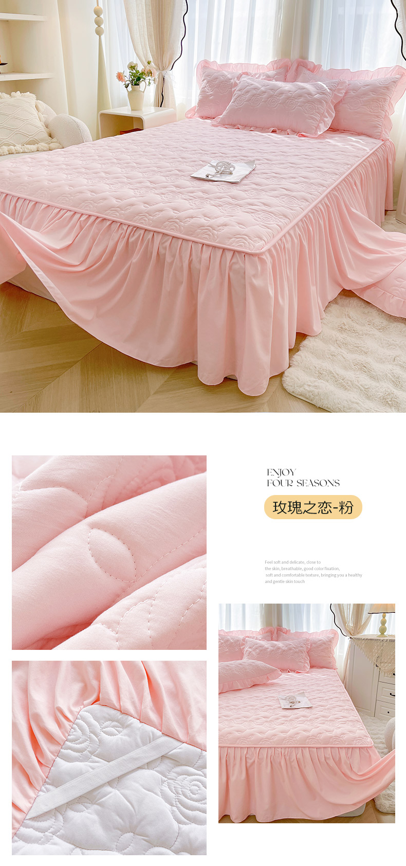 鼎丰家纺 2025新款纯色夹棉床裙-玫瑰之恋 玫瑰之恋-粉