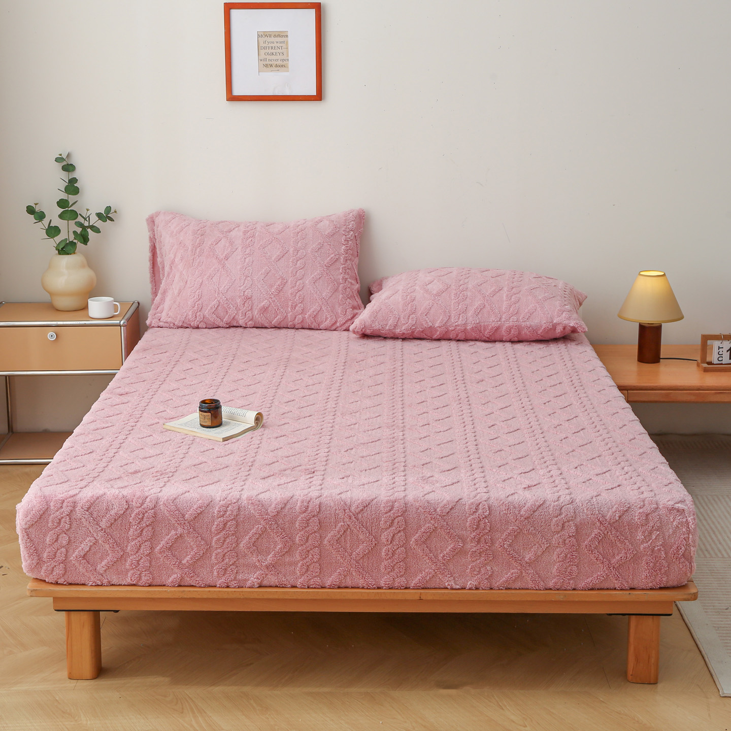 • 91家纺网 家纺一手货源 找家纺 亚龙工厂店 2025新款亲肤舒适塔肤绒床笠三件套 粉色