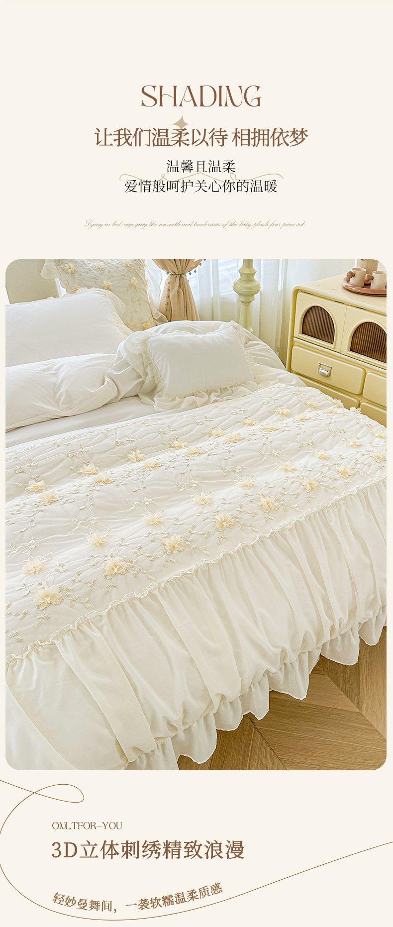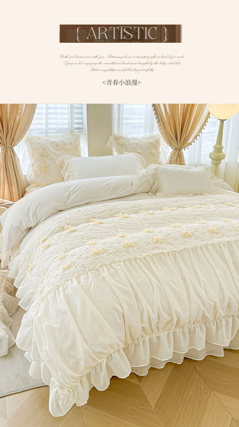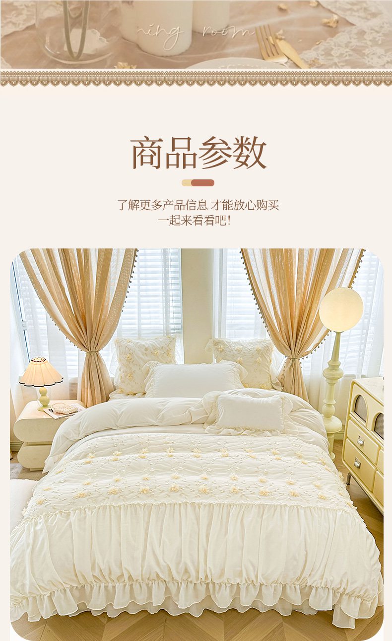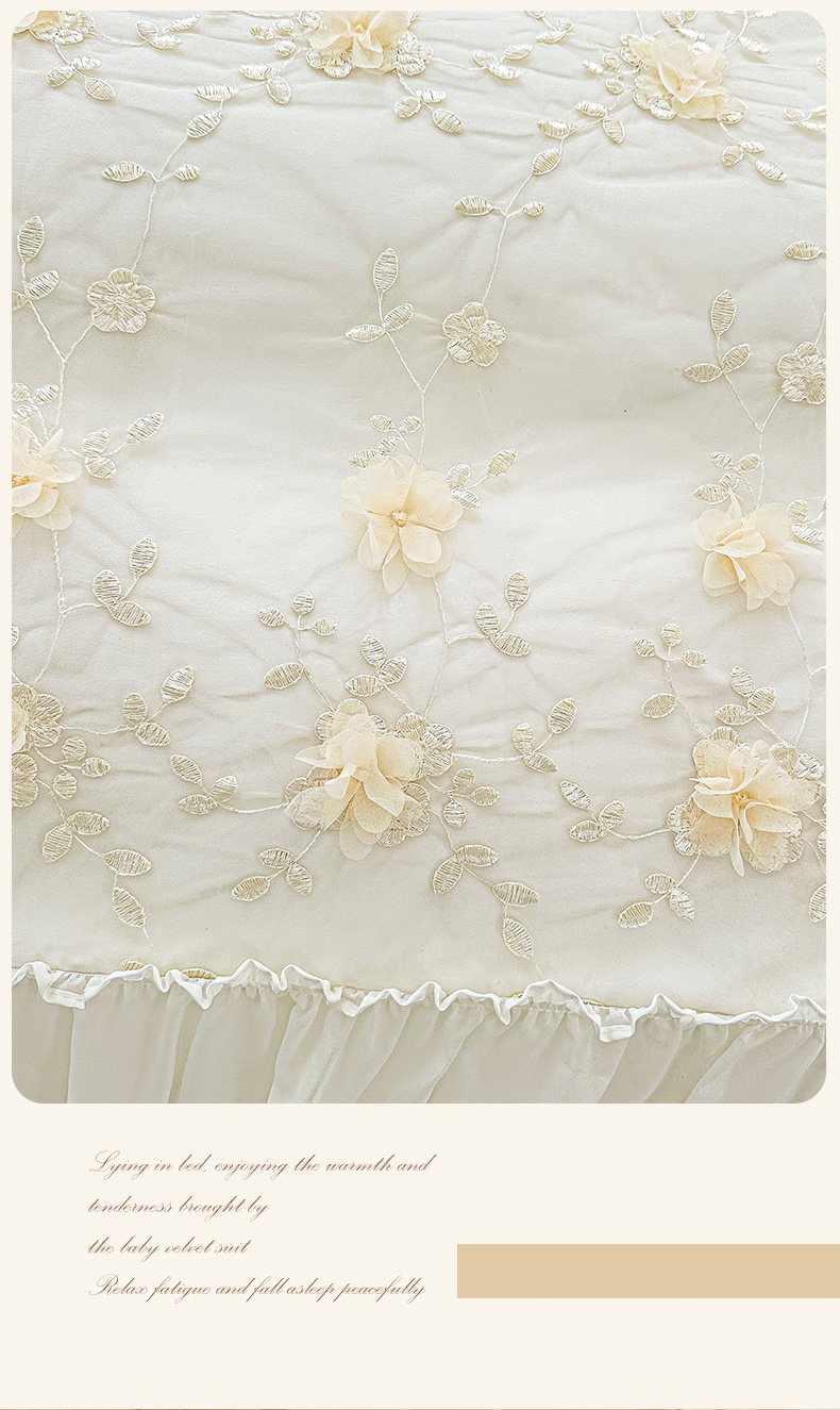 当前位置: 91家纺网 > 商品网购 > 床品套件 > 四件套 > 其它四件套 > 鼎丰家纺 2025新款立体花朵蕾丝雪纺花边四件套-绮梦系列 绮梦-奶白