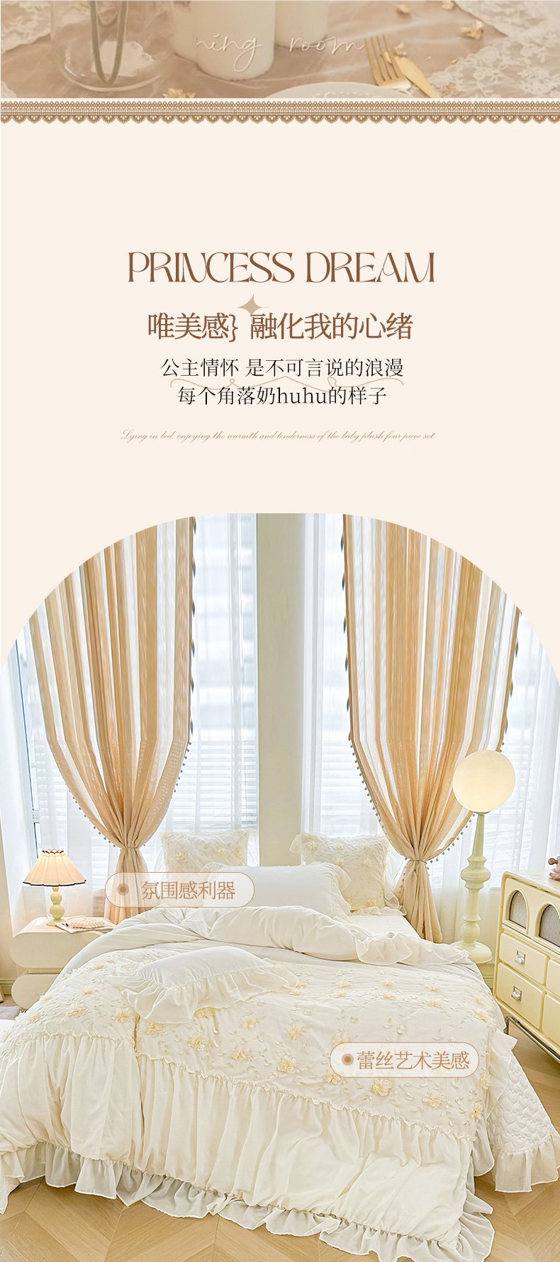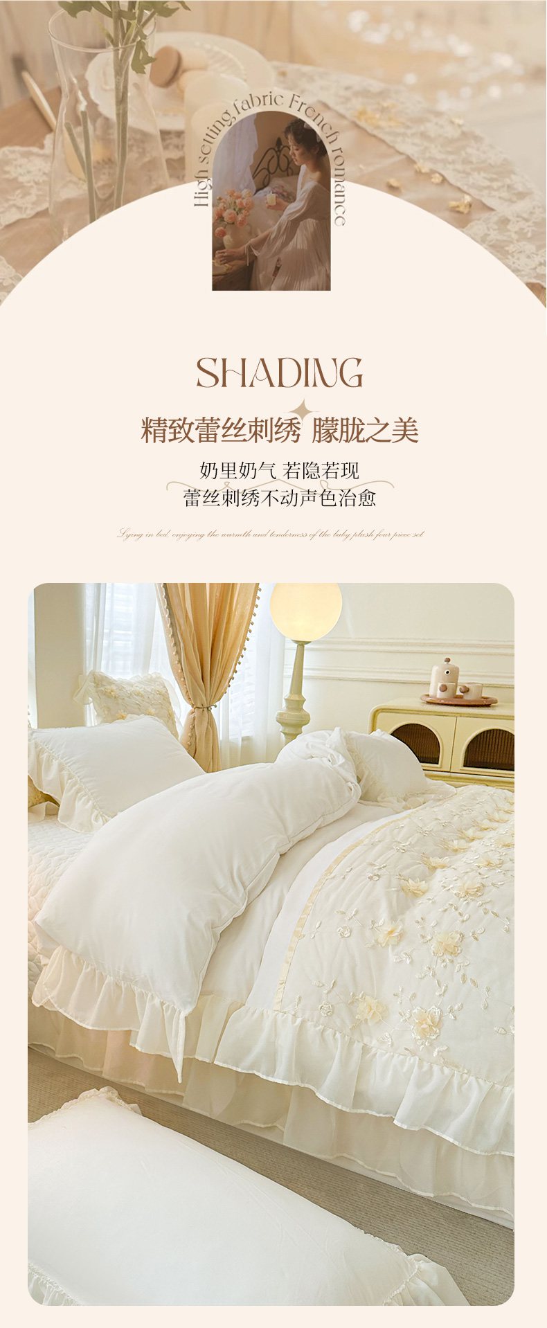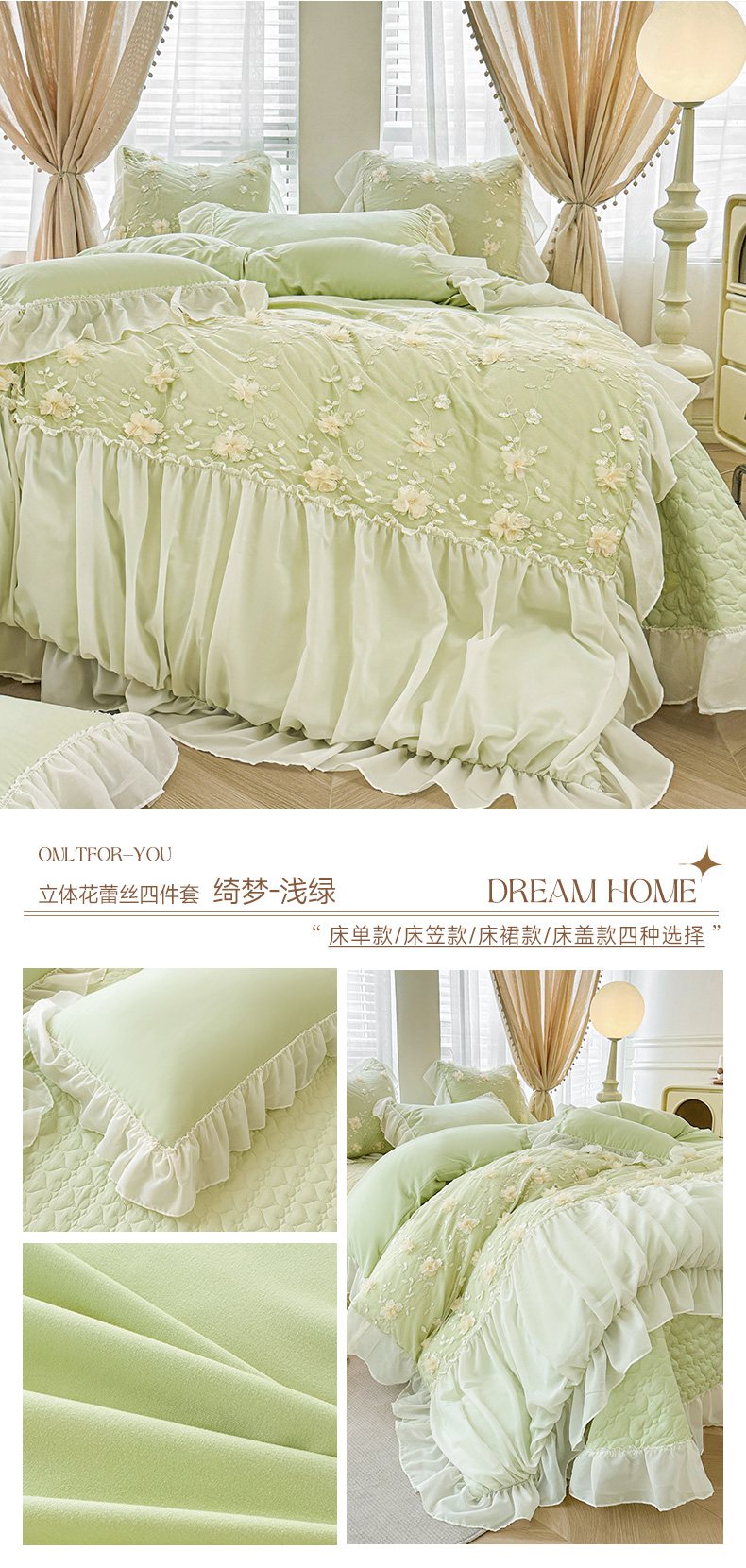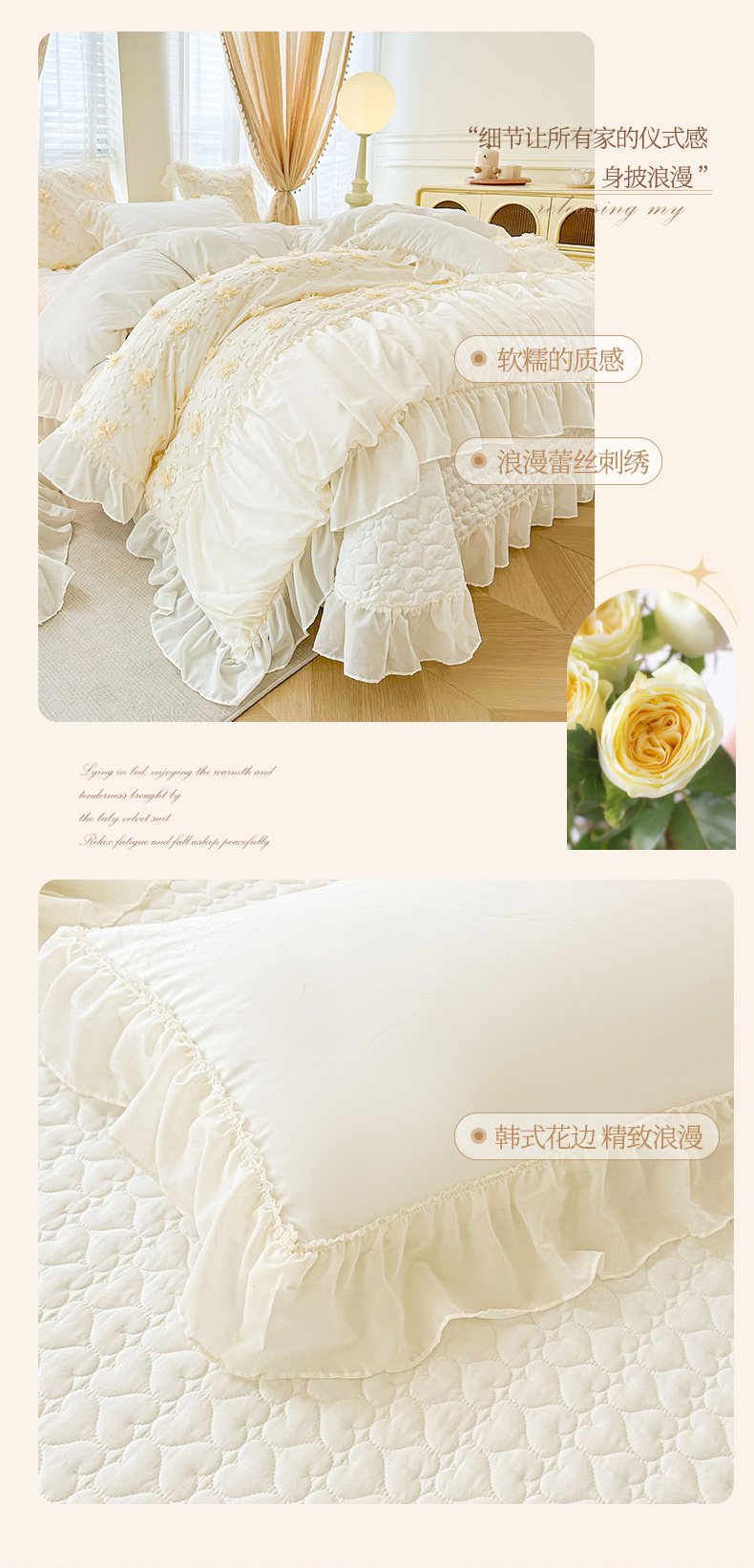 当前位置: 91家纺网 > 商品网购 > 床品套件 > 四件套 > 其它四件套 > 鼎丰家纺 2025新款立体花朵蕾丝雪纺花边四件套-绮梦系列 绮梦-奶白