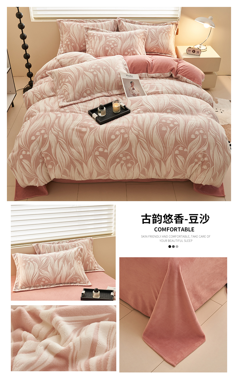(总)恒爱 2022秋冬水晶绒翩翩花舞夹棉床裙四件套,大红色,豆沙红,橄榄绿,公主粉,桔色,咖啡色,孔雀绿,拉菲红,罗兰紫,玫红色,美人玉,米白色,米驼色,抹茶绿,浅灰色,紫色