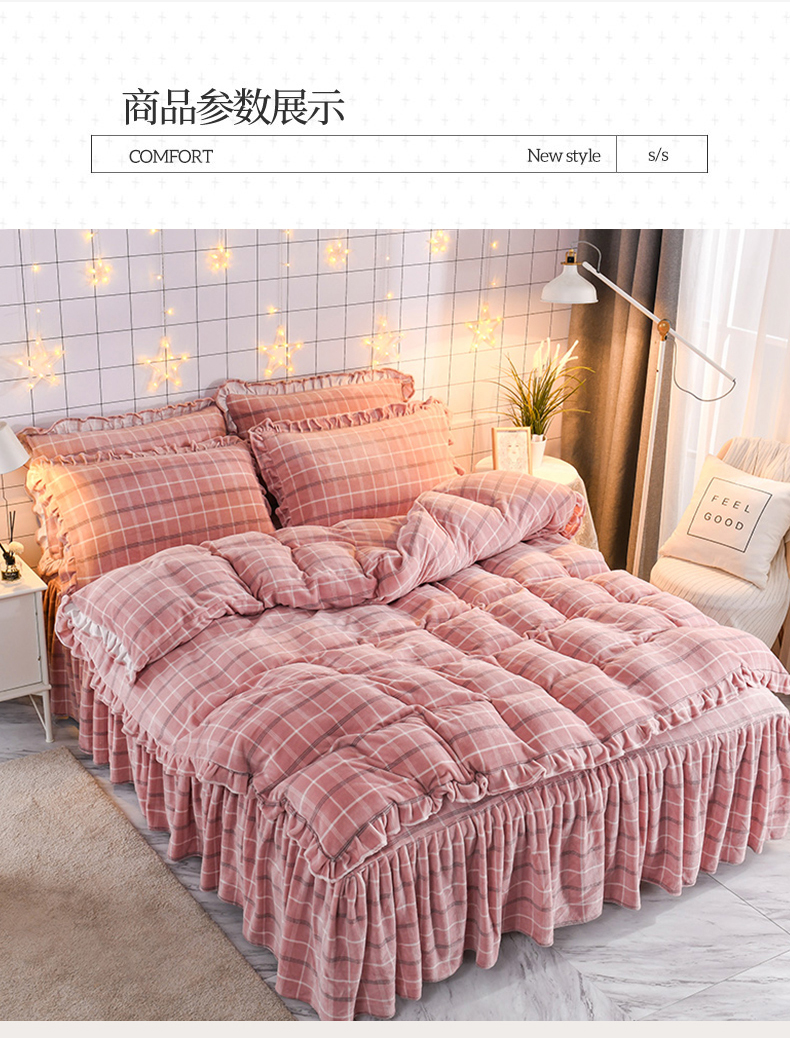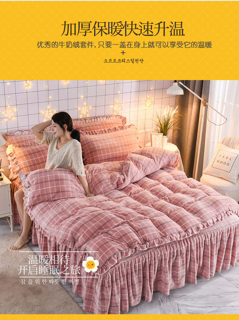 (总)睡美人 2025新款韩版印花牛奶绒床裙款四件套,宝格-粉,贝贝熊-咖,草莓派,格调豆沙,玫瑰情缘,天天向上 黄