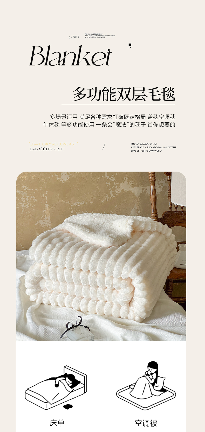 当前位置: 91家纺网 > 商品网购 > 毛毯休闲毯绒毯 > 毛毯 > 艾咪-Amy ntmy 2025新款立体抽条仿兔绒羊羔绒双层毯子 双层毯-半见白