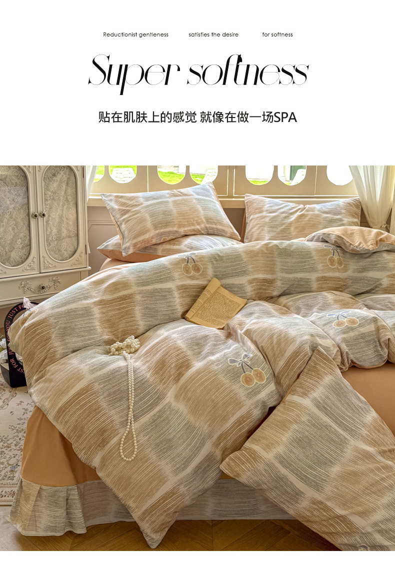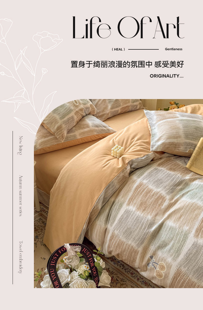 (总)田野2025新款全棉皱皱纱四件套,半夏-粉,半夏-蓝,时予-黄灰,时予-灰绿,时予-桔兰,小半-粉米,小半-绿紫,小半-奶茶棕,小半-亚麻棕
