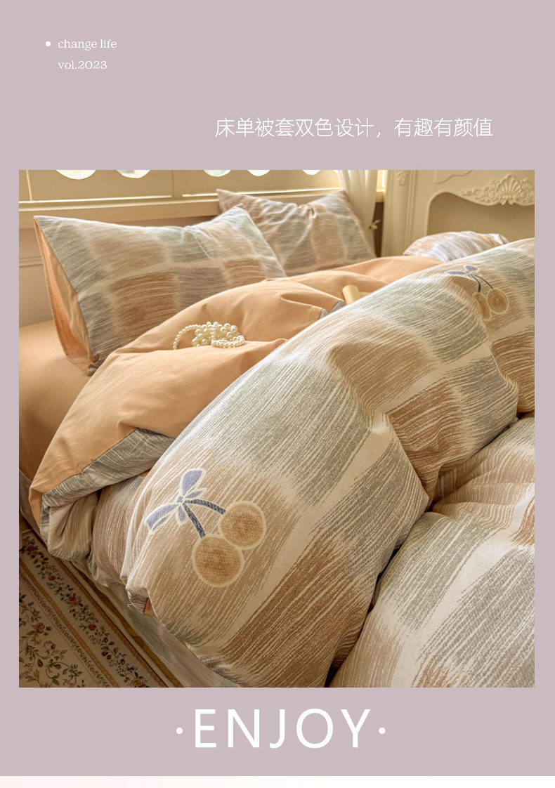 商品名称:田野 2025新款全棉13360加厚磨毛印花四件套 樱为你-桔