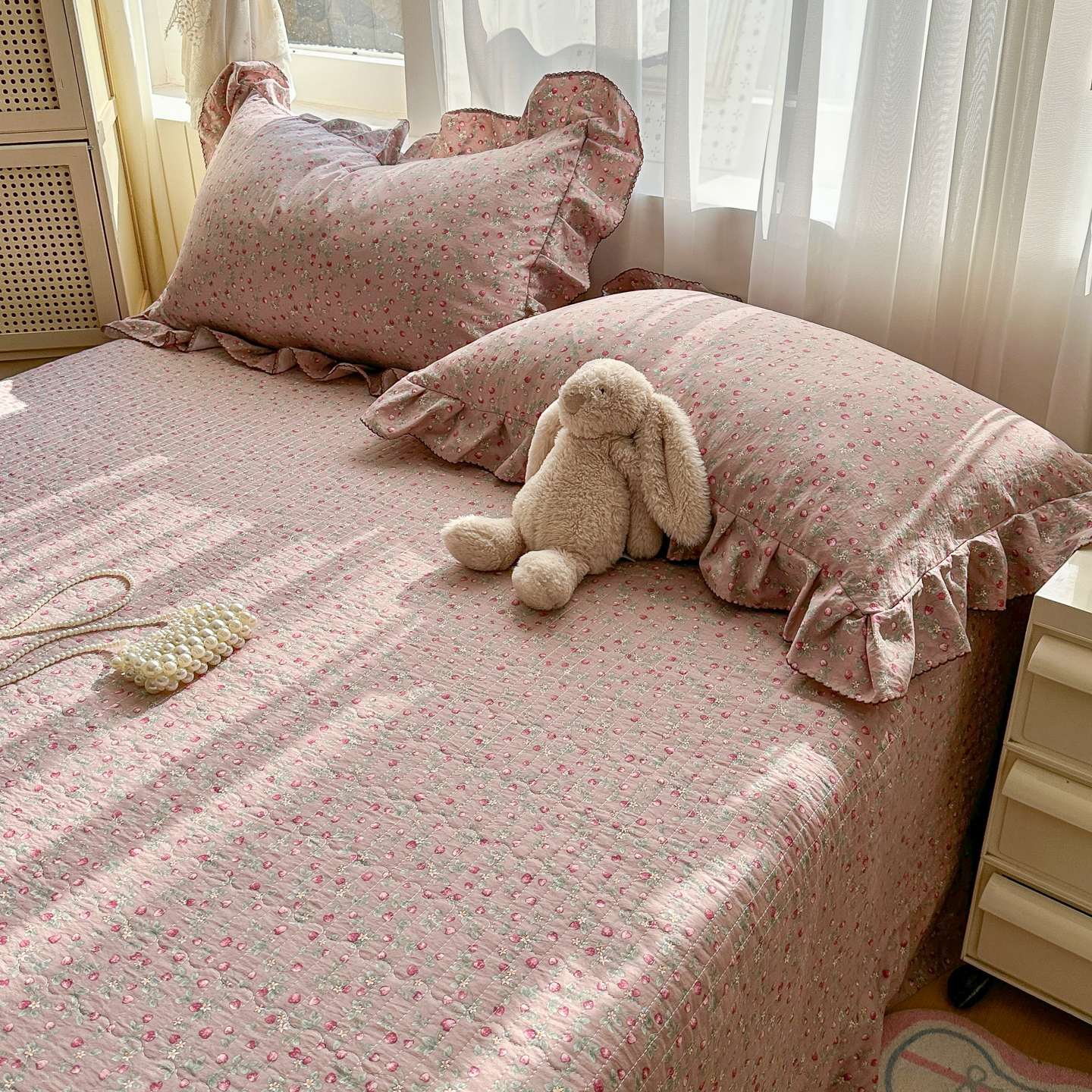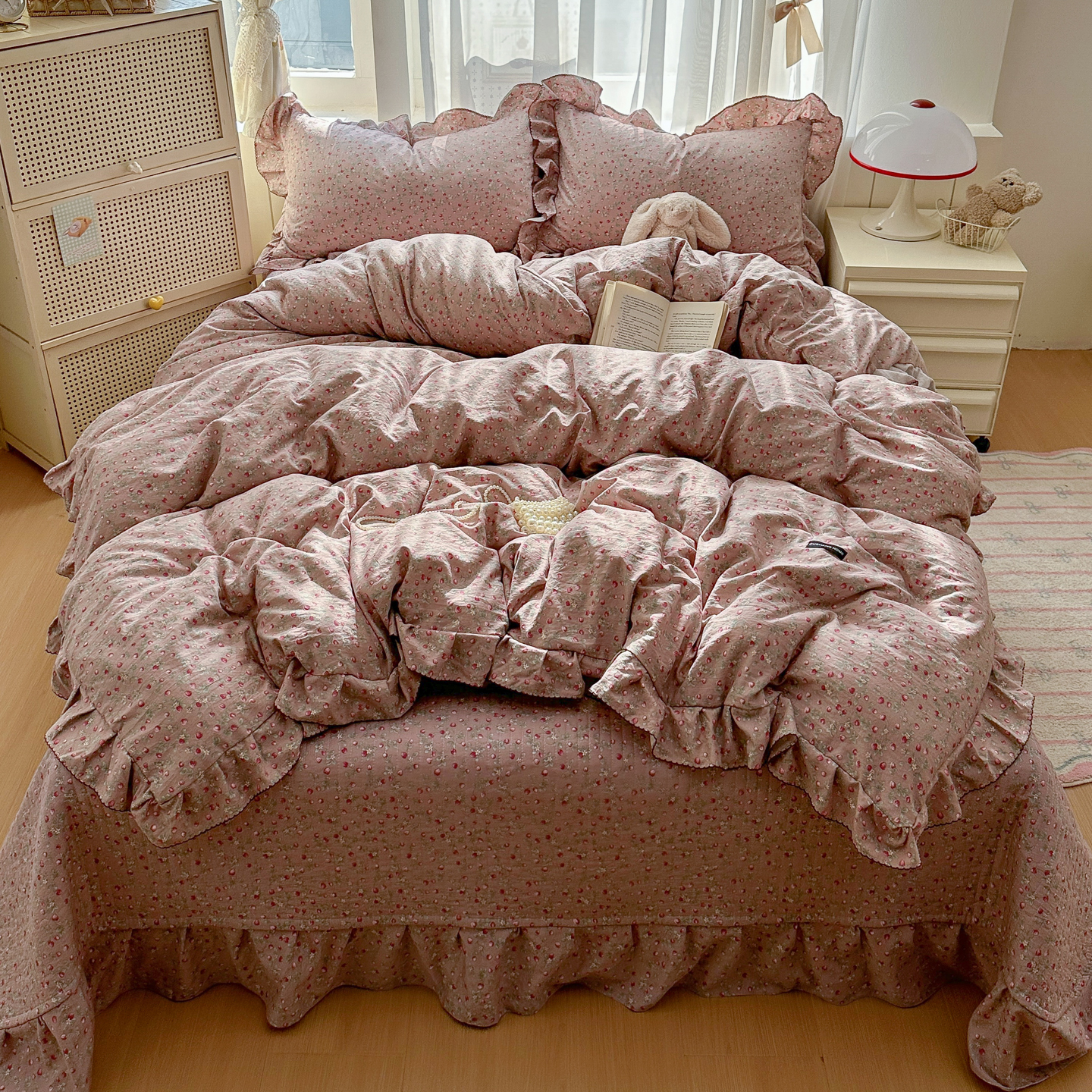 (总)欧尚 2026新款花边床盖四件套,春和,花束,花野,灰樱桃,咖爱心,咖豹纹,咖啡小猫,梨花落,绿爱心,梦境,木马,奶油波点,暖橘枝,暖心,人间草木,田园兔,小女孩,星愿,摇摇马,紫爱心,紫豹纹,紫苏