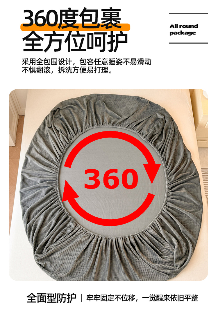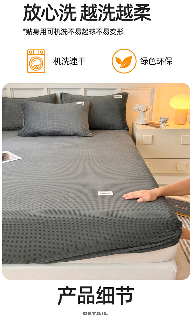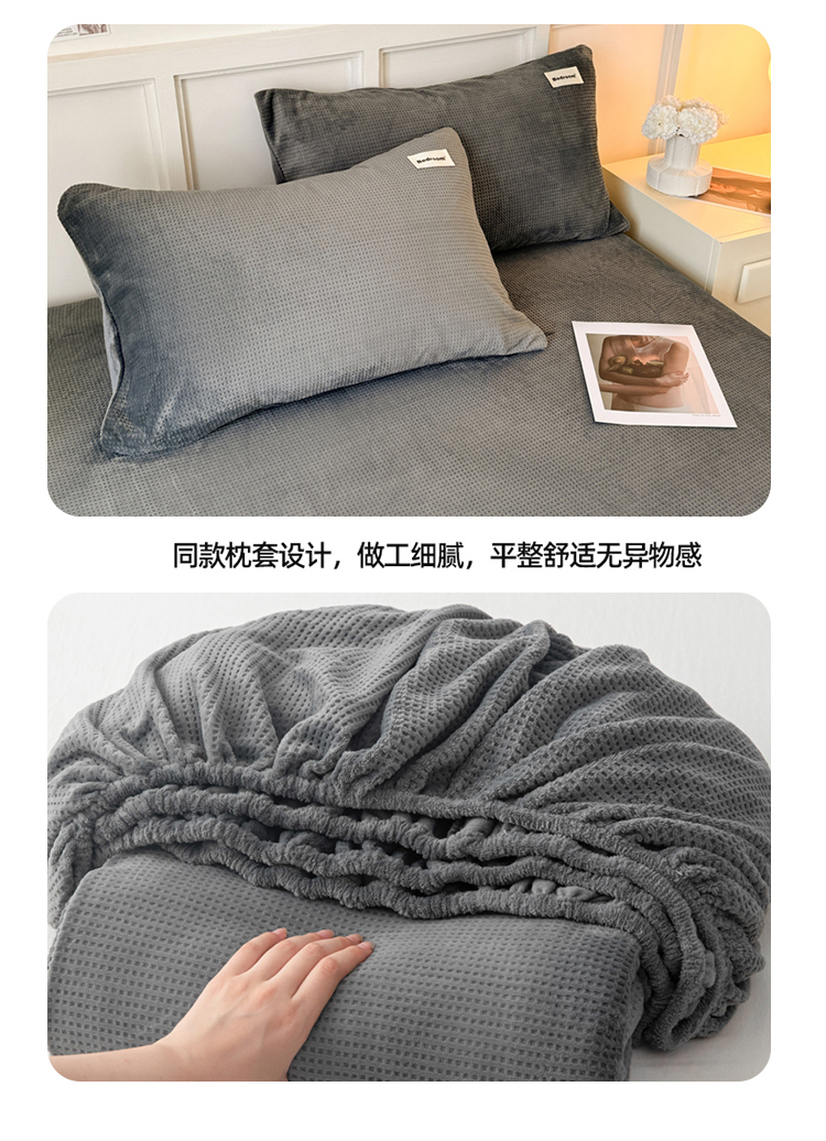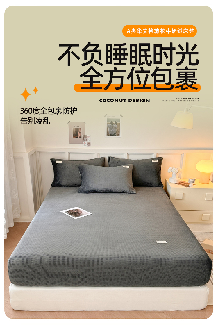 • 91家纺网 家纺一手货源 找家纺 眠博士 2025新款A类华夫格剪花牛奶绒床笠 剪花床笠-深灰