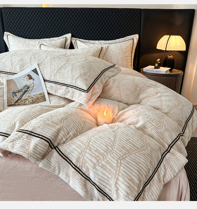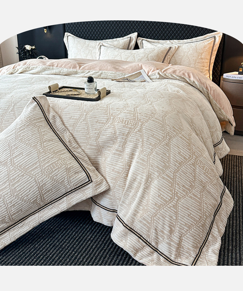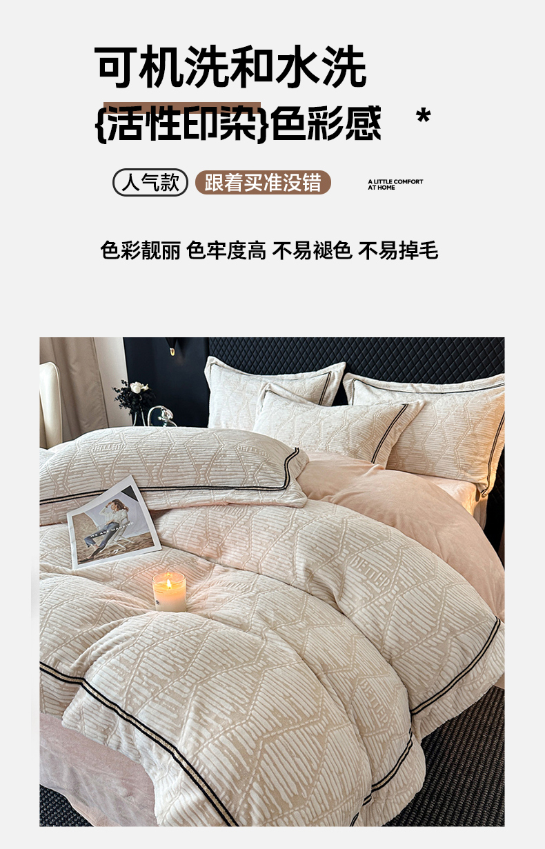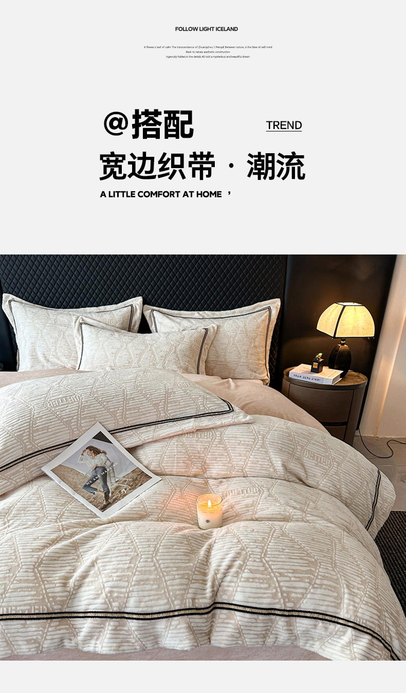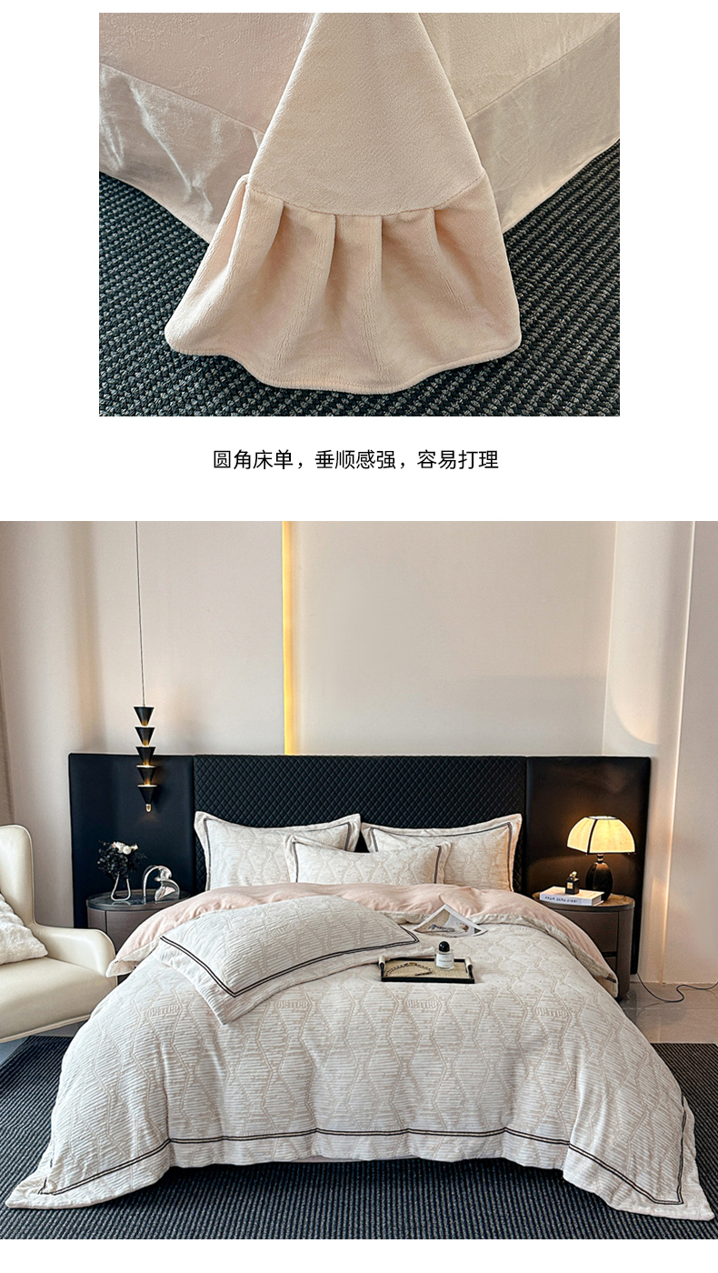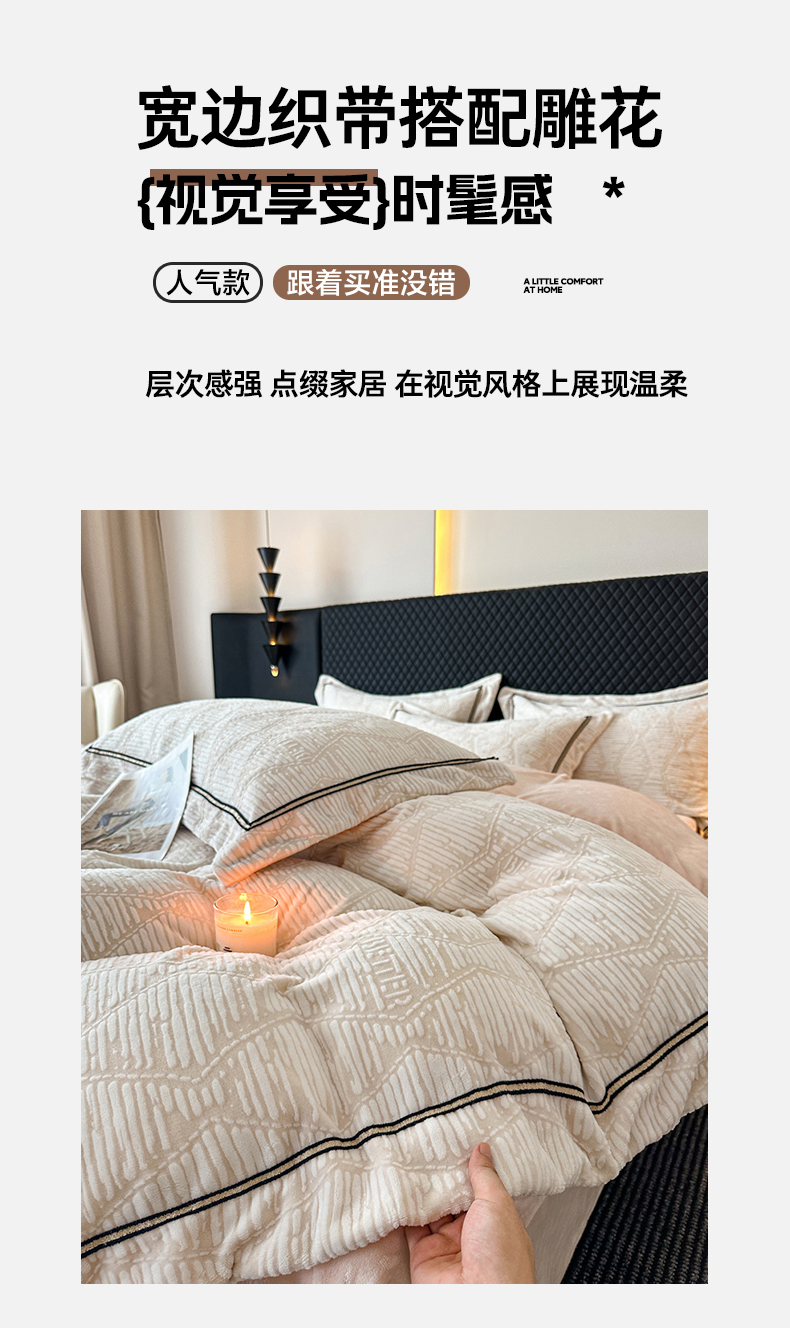 (总)诺梵家纺 2025新款兔毛绒包边 雕花绒四件套,梵花-米白,梵花-紫金,花魅-咖,青黛,苏乡,栖春山,杏坞-黄
