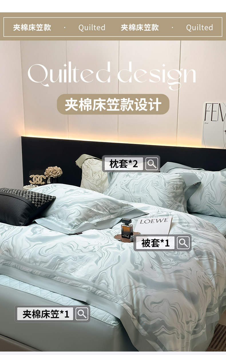 商品名称:2025新款高端A类长绒棉夹棉床盖床笠四件套全棉纯棉纯色绗绣四季款保护罩高级感床上用品 时漫-月石绿