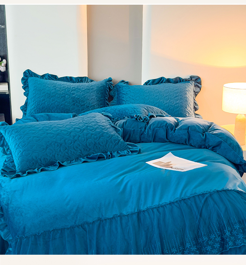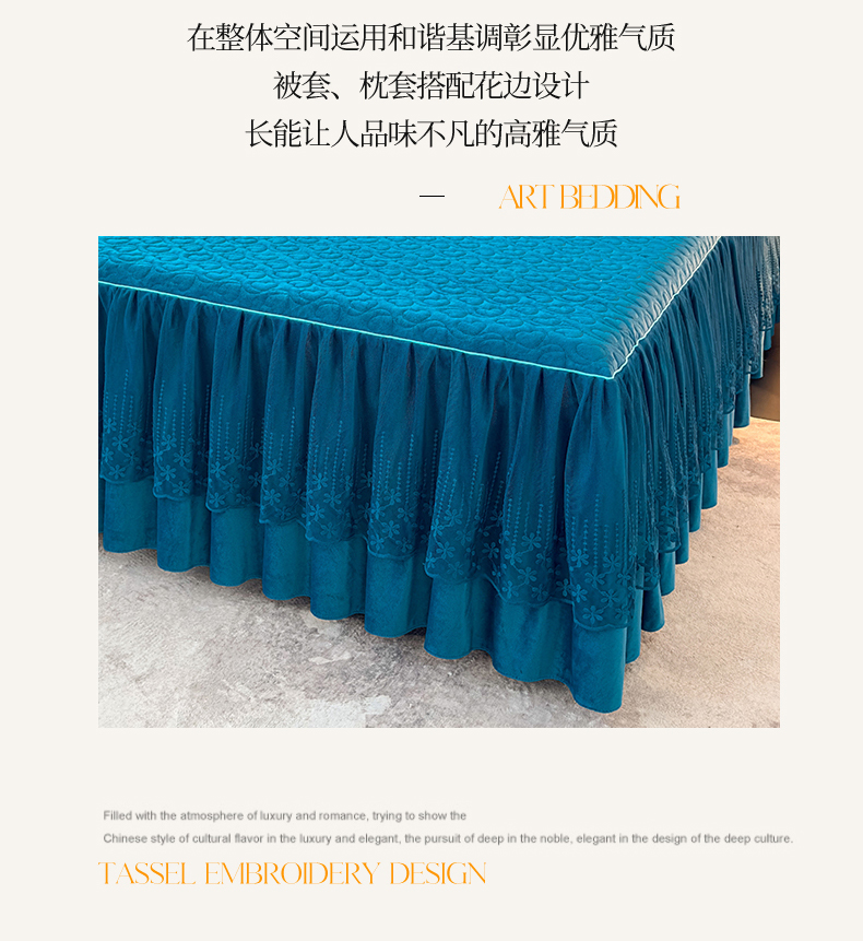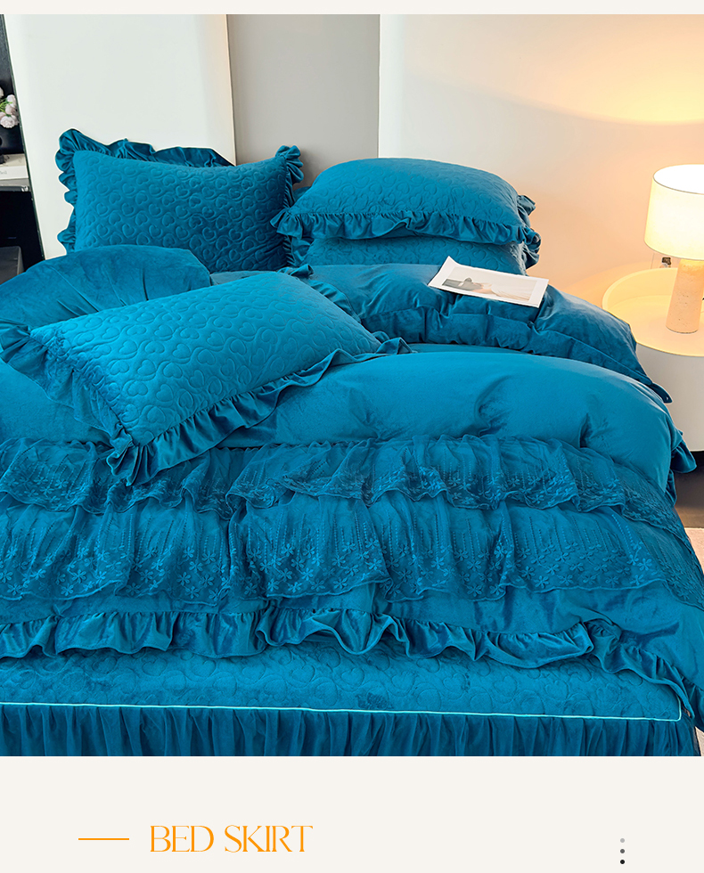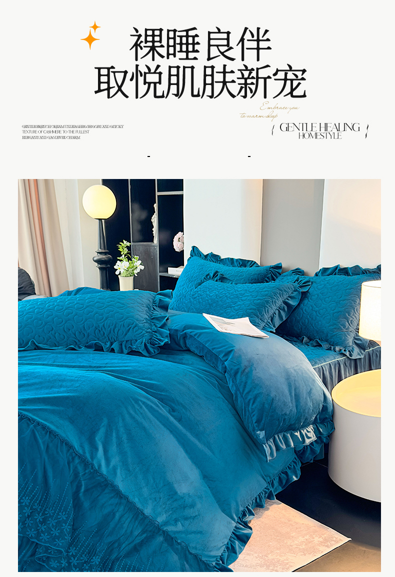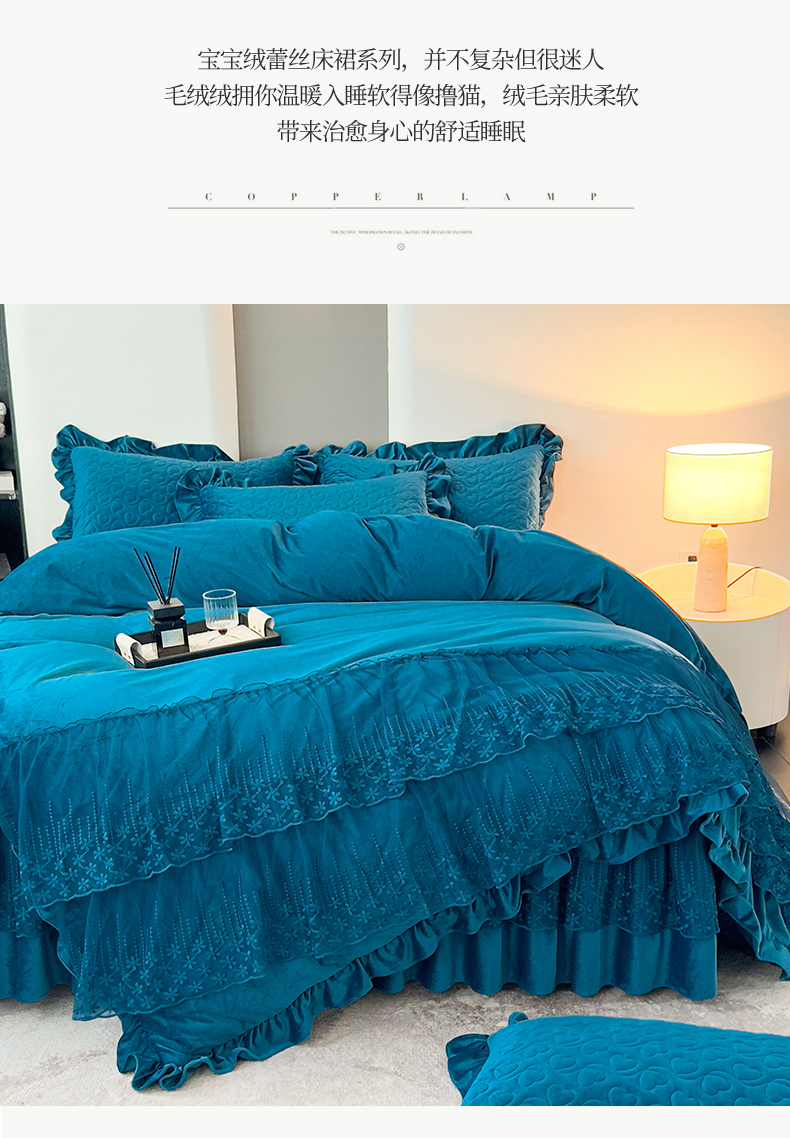 当前位置: 91家纺网 > 商品网购 > 床品套件 > 四件套 > 其它四件套 > 恒爱家纺 2025新款宝宝绒紫陌听雪床裙款四件套终版 宾利蓝