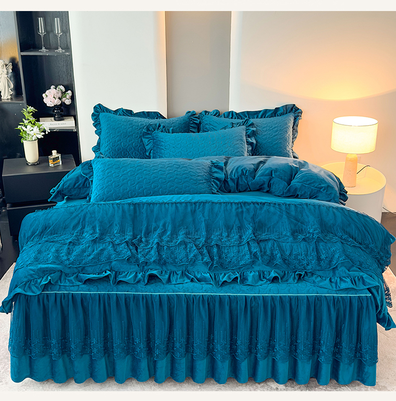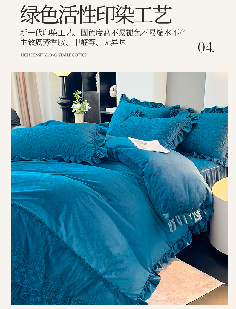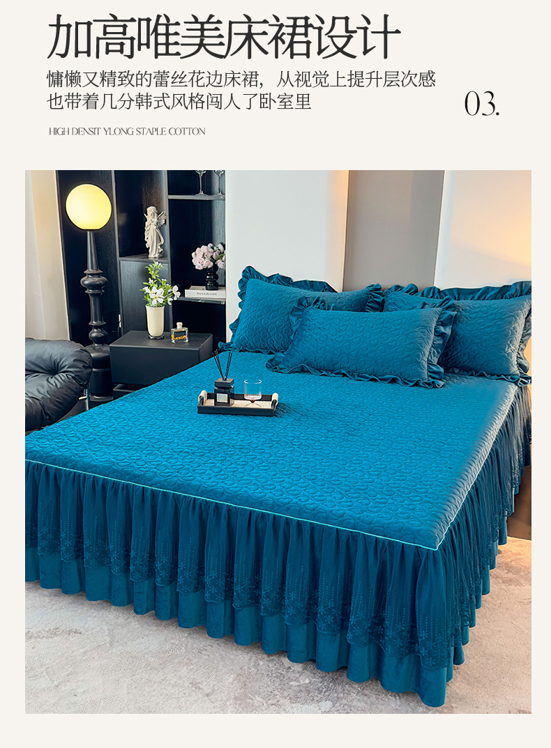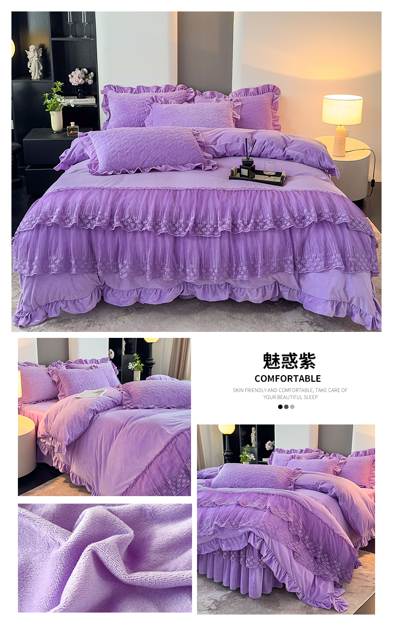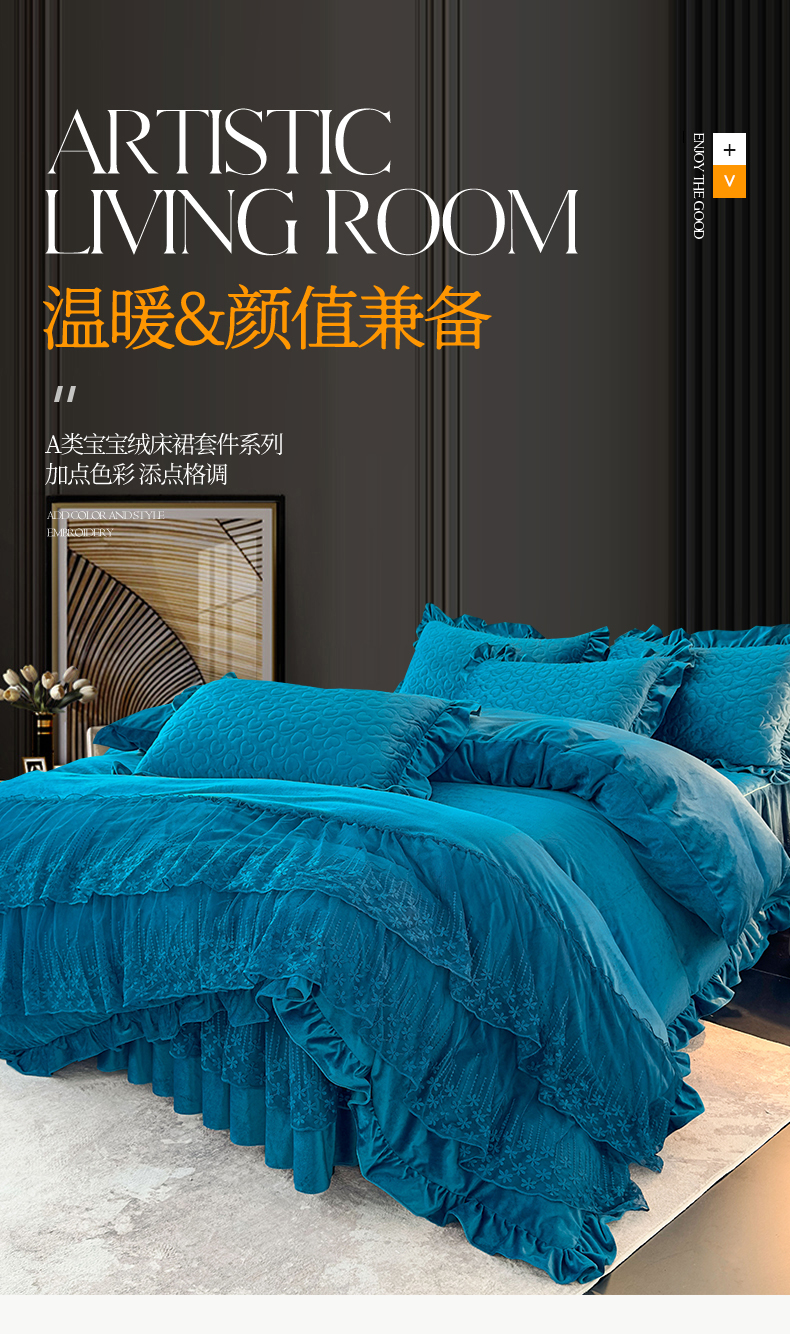 当前位置: 91家纺网 > 商品网购 > 床品套件 > 四件套 > 其它四件套 > 恒爱家纺 2025新款宝宝绒紫陌听雪床裙款四件套终版 宾利蓝