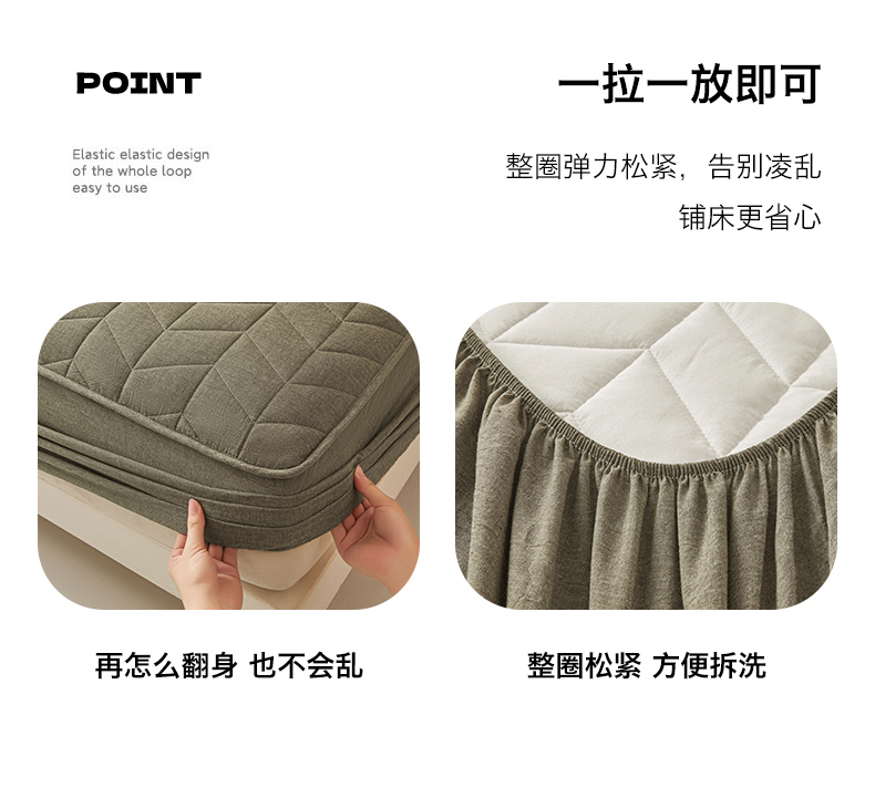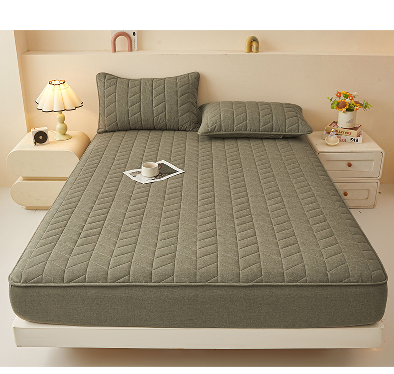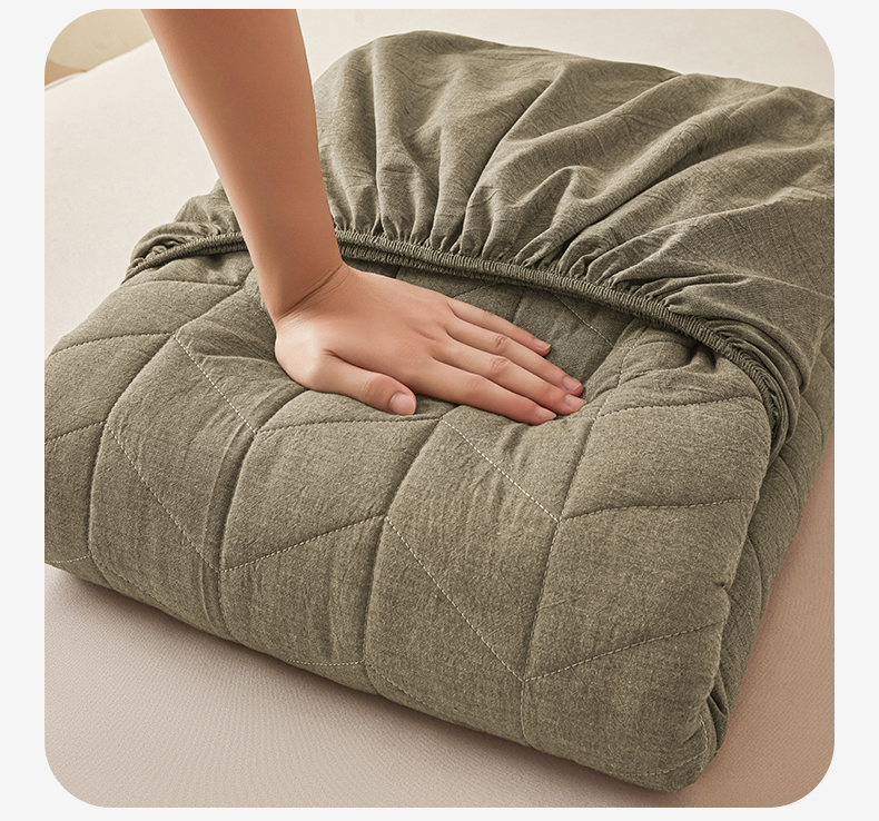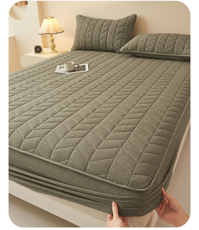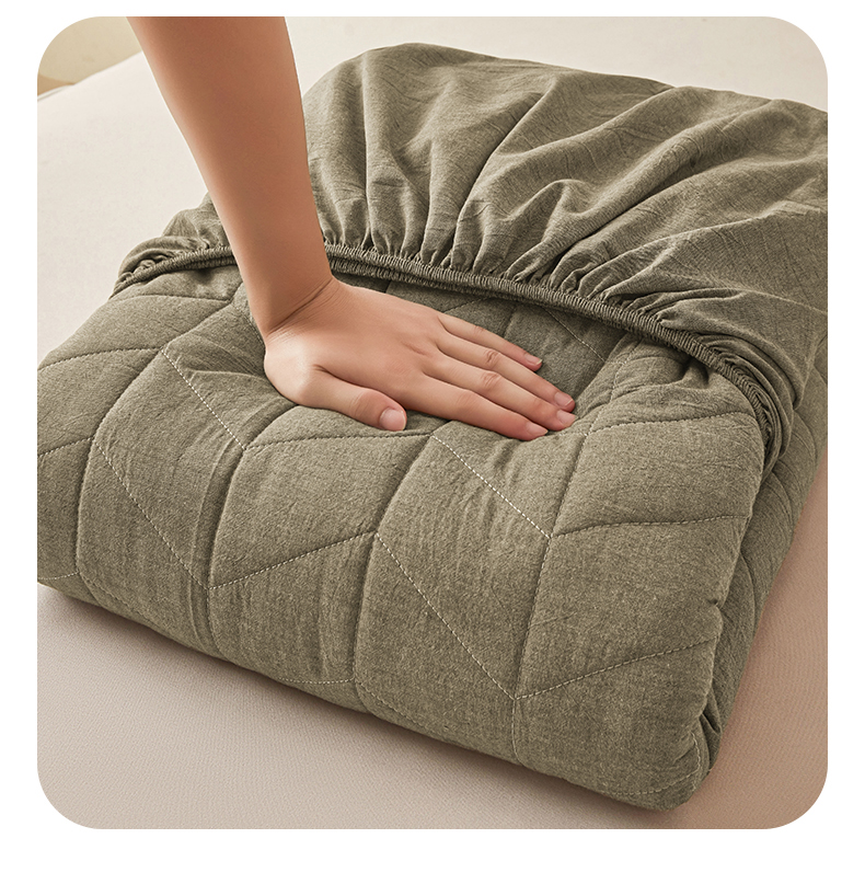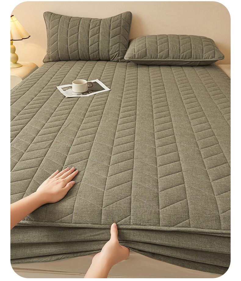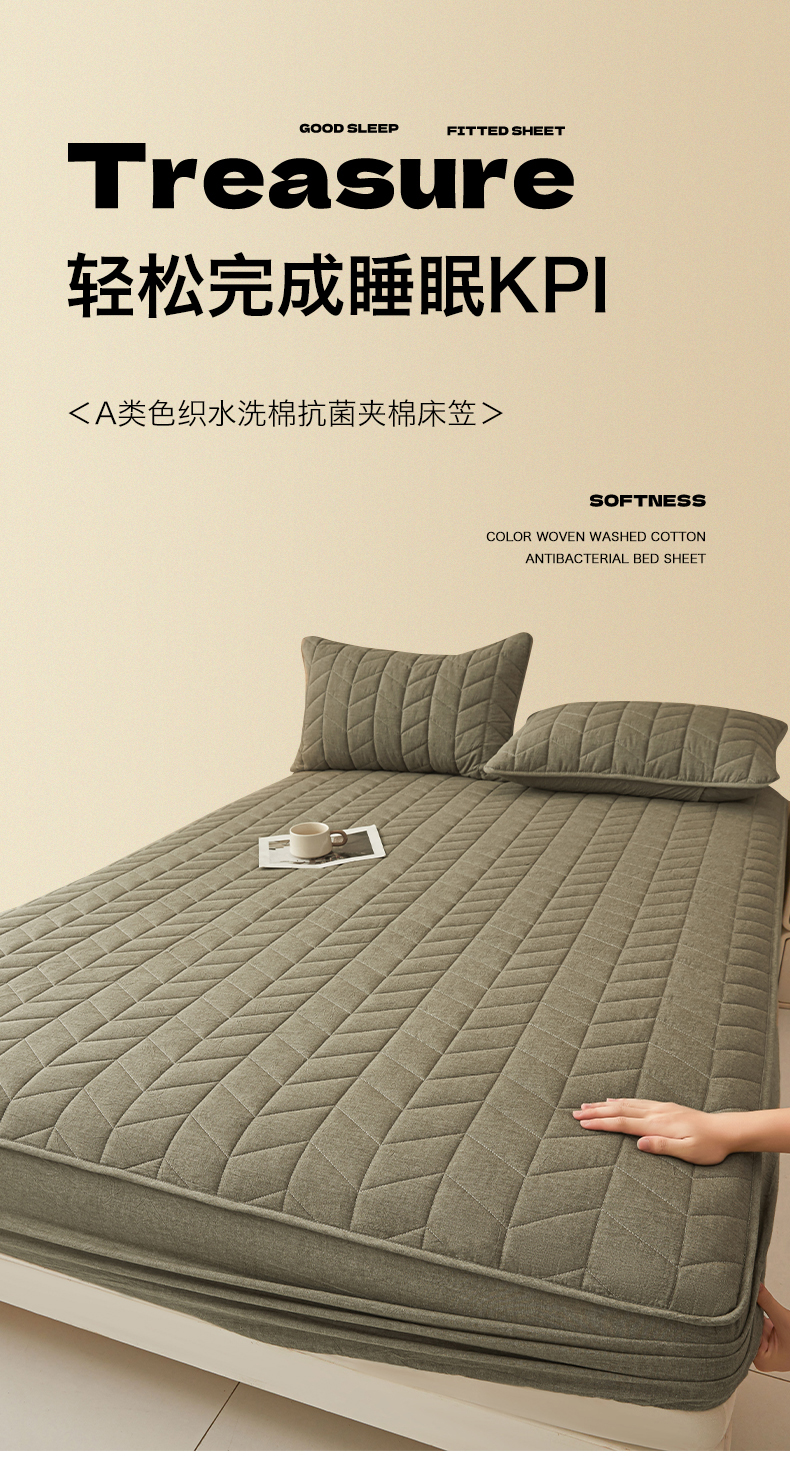(总)优眠坊 2025新品日式无印风全棉色织水洗棉夹棉加厚抗菌纤维绗缝床笠,方格-卡其,方格-抹茶绿,方格-玉色,条纹-灰,条纹-卡其,条纹-清新绿,条纹-玉色