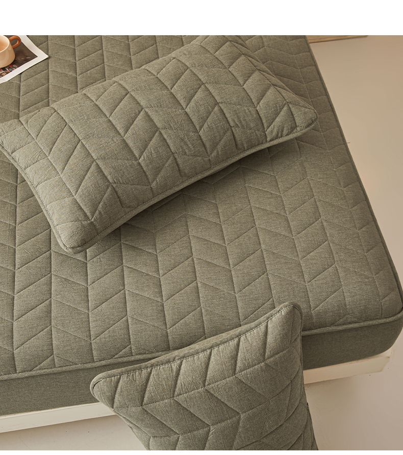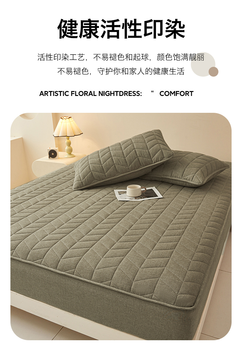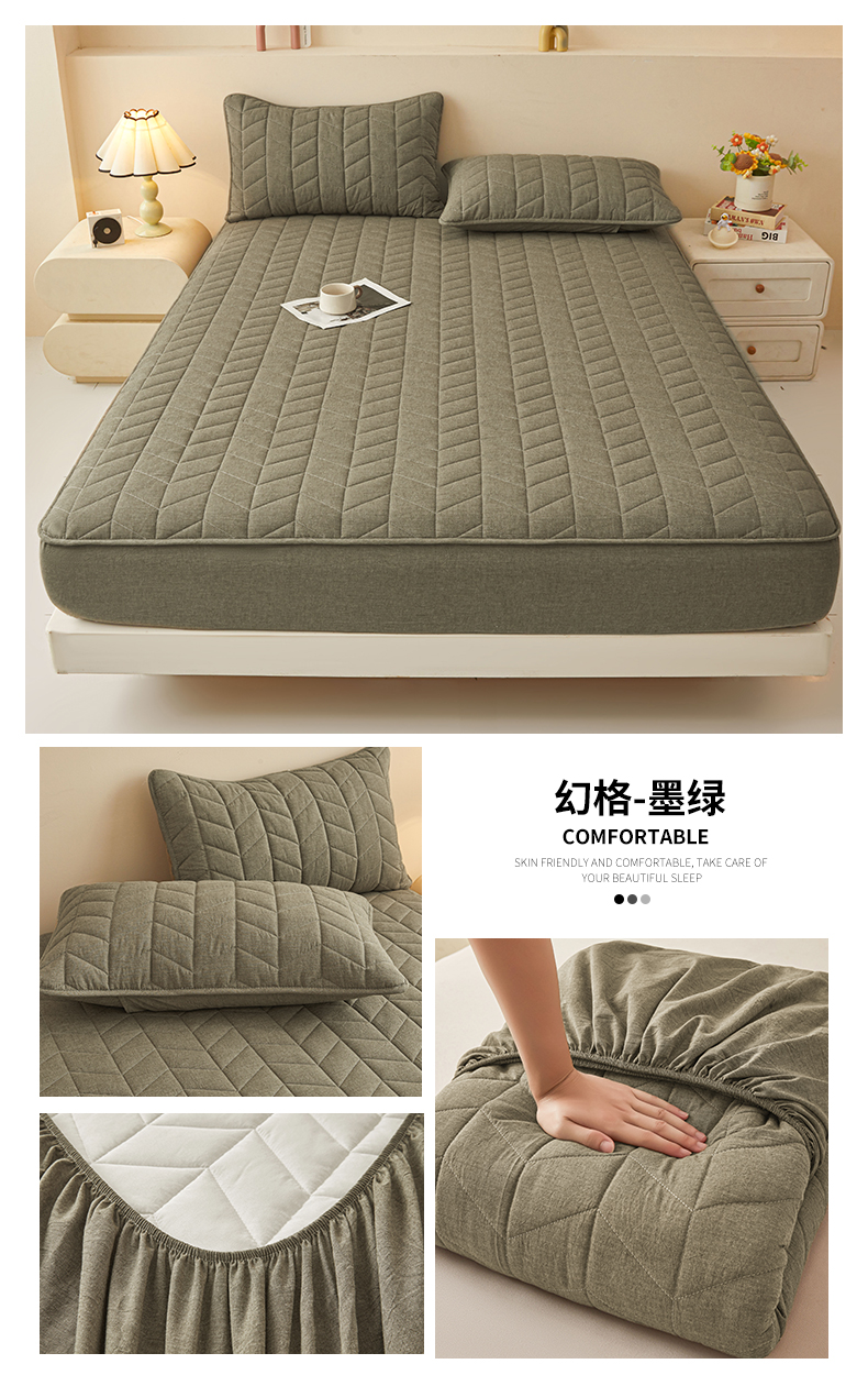 优眠坊 2025新品全棉色织水洗棉纯棉夹棉抗菌绗缝床笠-幻格系列 幻格-墨绿