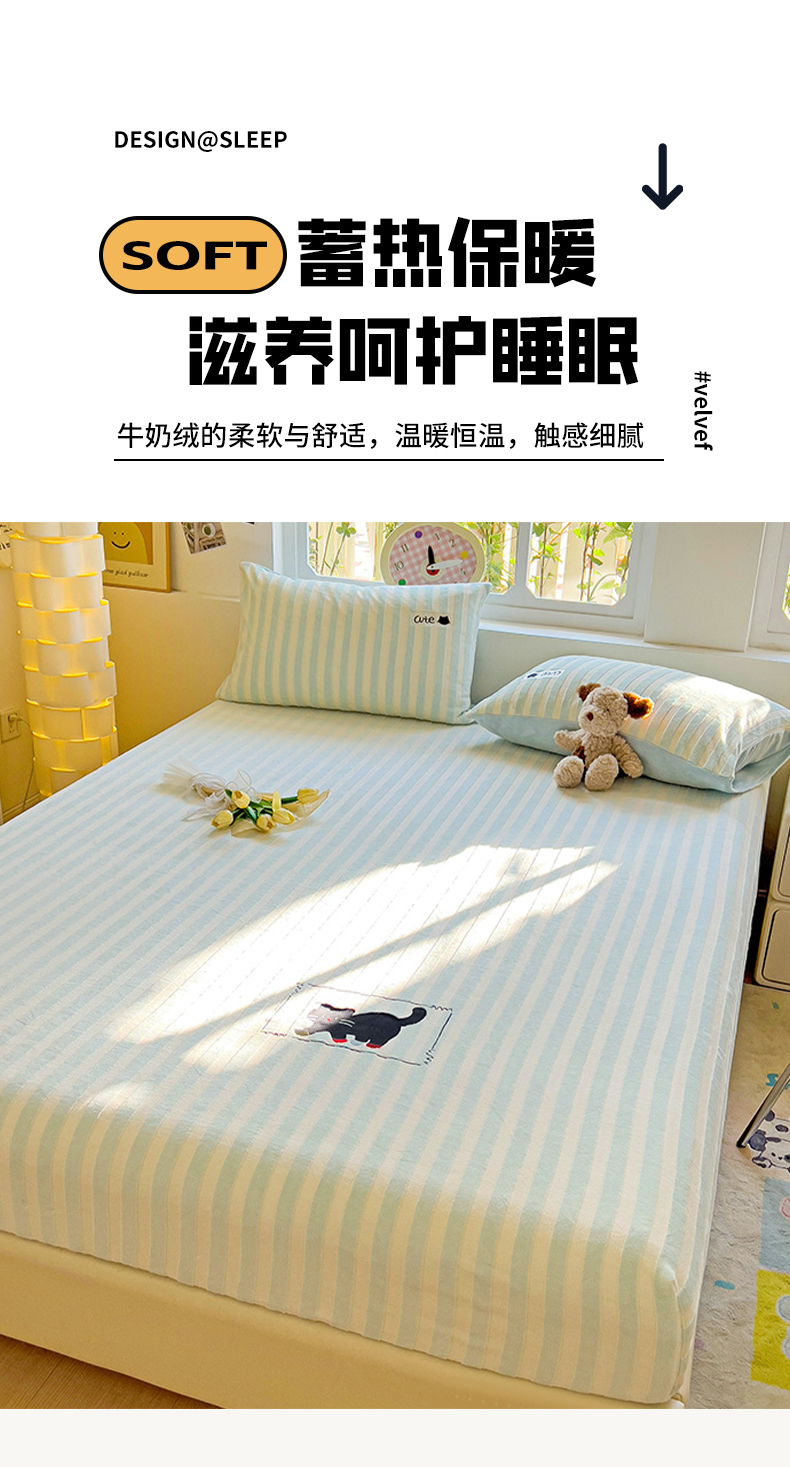 (总)繁花家居 2025新款经典条纹系列绣花牛奶绒单品床单床笠床单床笠单件