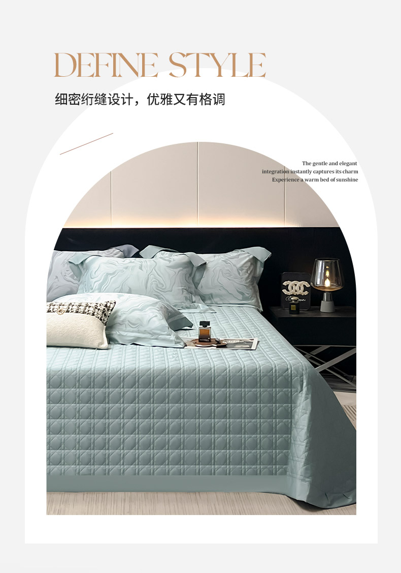 商品名称:2025新款高端A类长绒棉夹棉床盖床笠四件套全棉纯棉纯色绗绣四季款保护罩高级感床上用品 时漫-月石绿