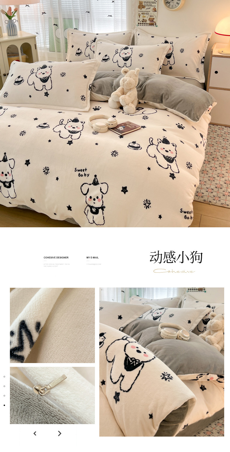 商品名称:倾慕 2026新款高克重时尚印花牛奶绒单被套 动感小狗