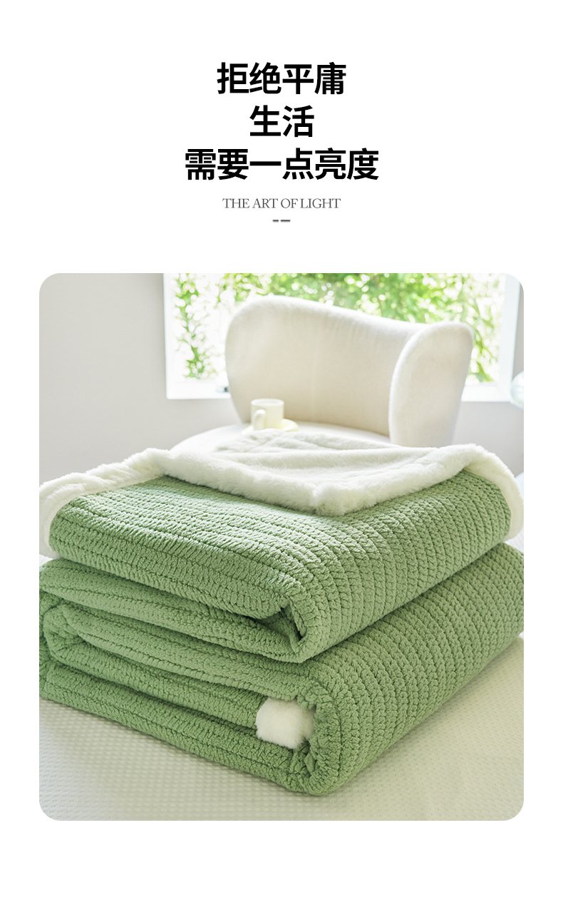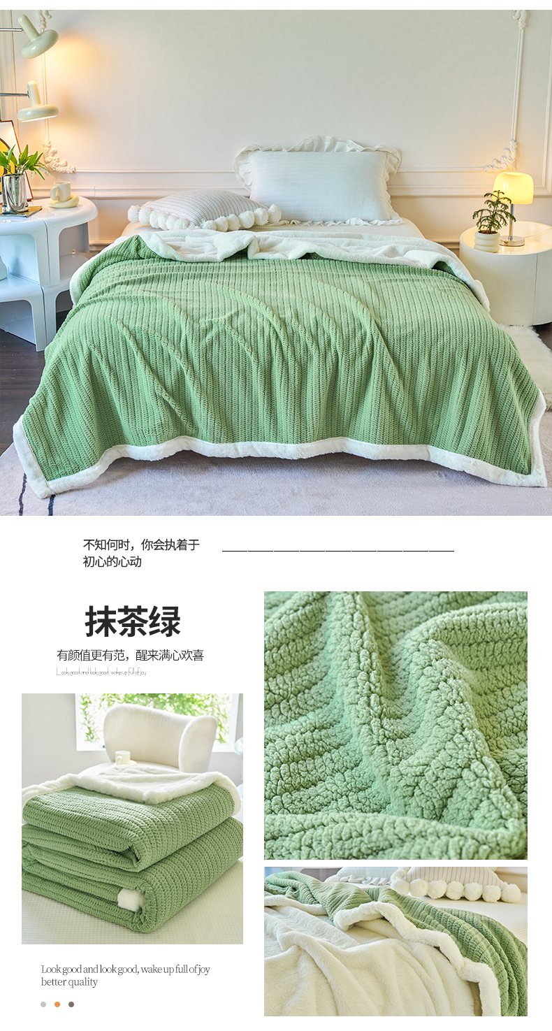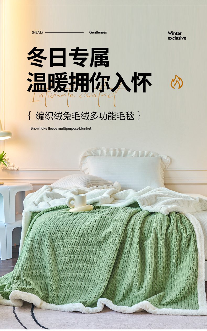 畅畅家纺 2025新款A面编织绒B面兔毛绒纯色春秋冬毛毯盖毯 芋泥紫