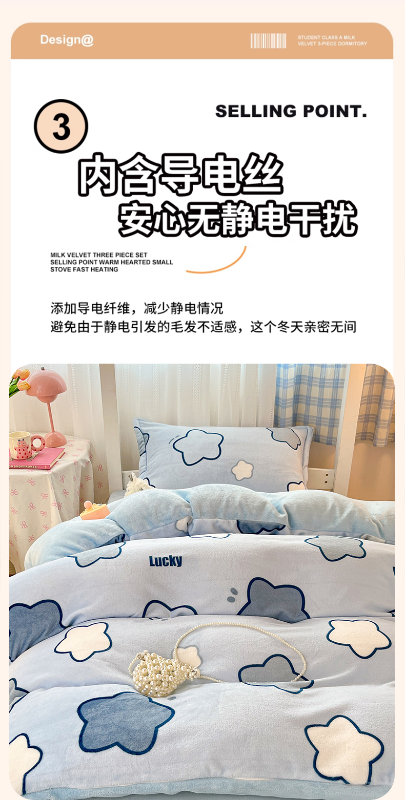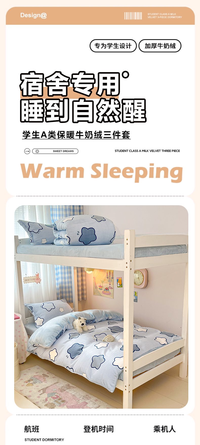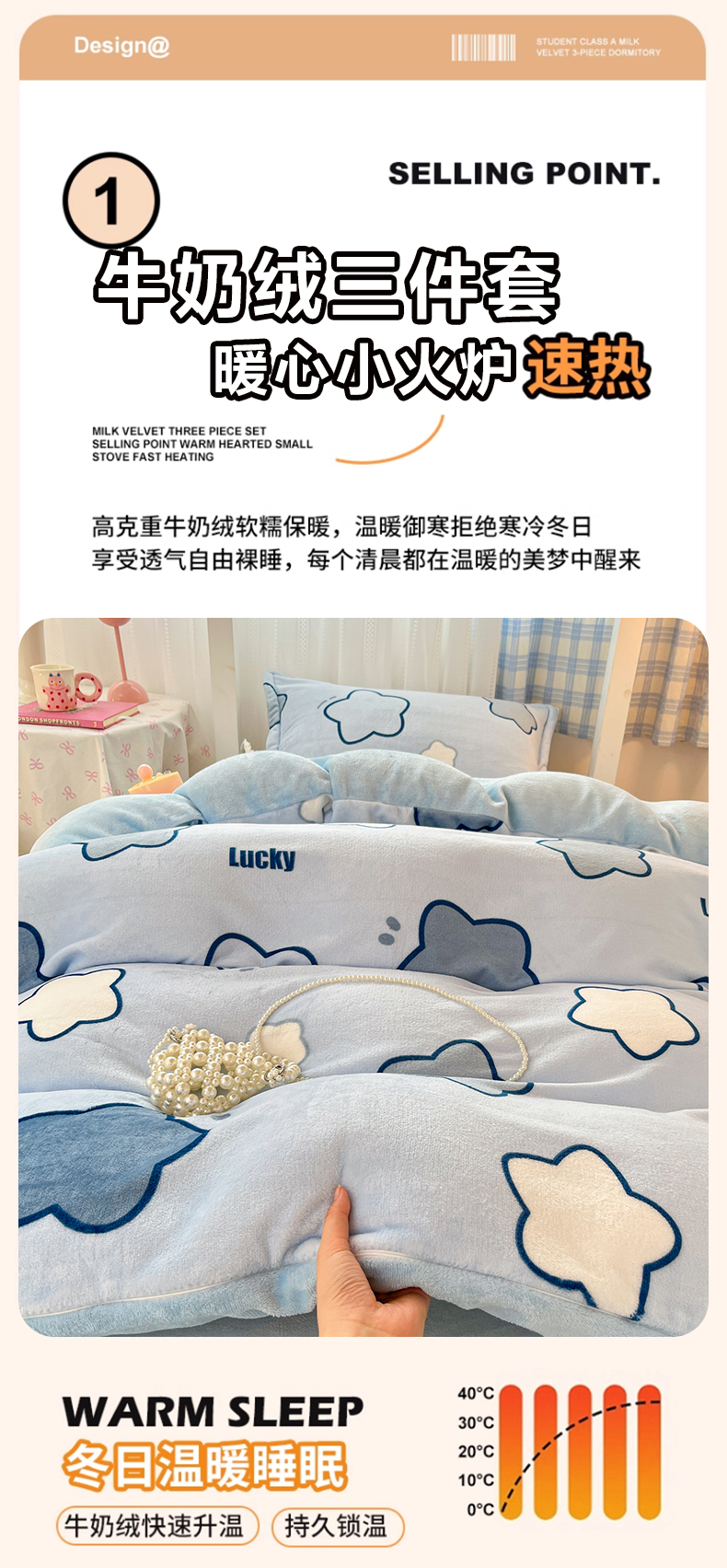 当前位置: 91家纺网 > 商品网购 > 床品套件 > 三件套 > 川悦生活 2025新款加厚保暖高克重牛奶绒宿舍三件套 天空星系