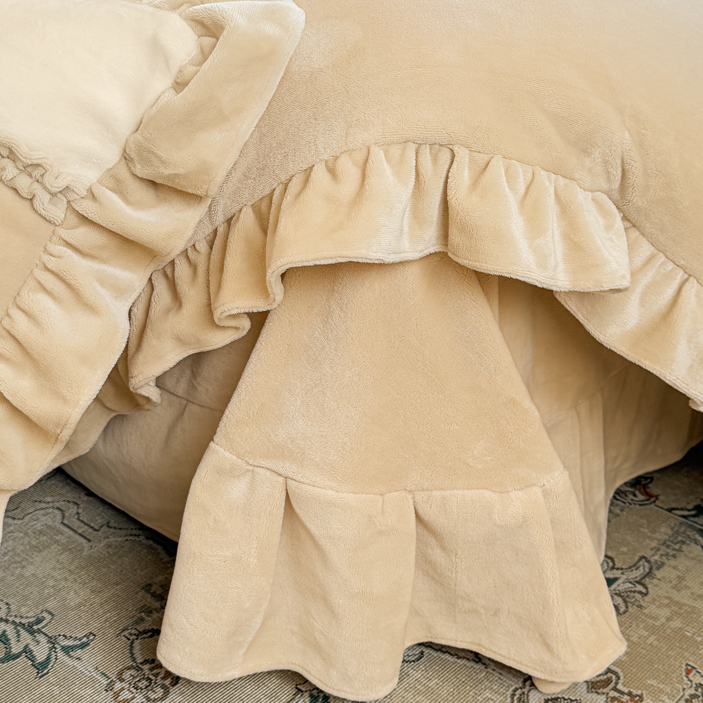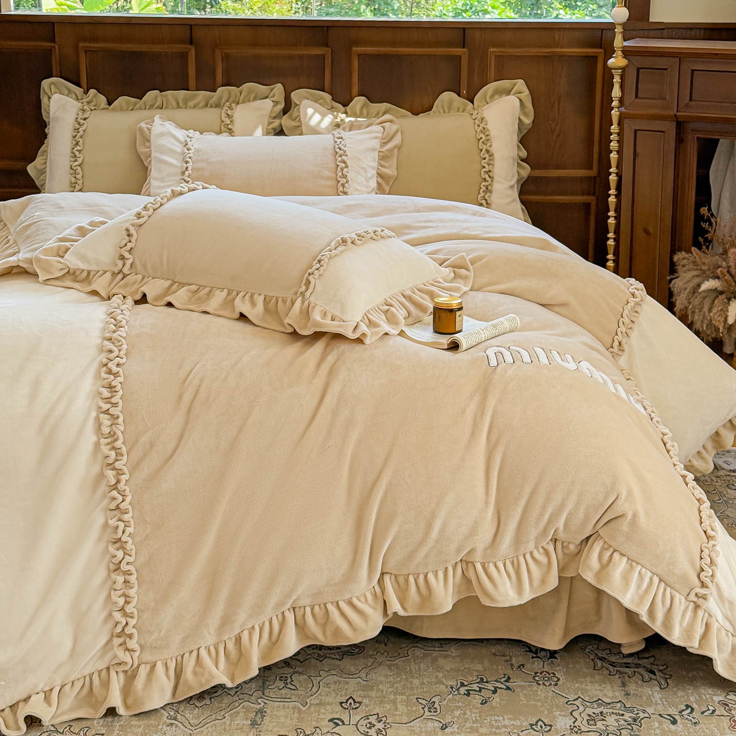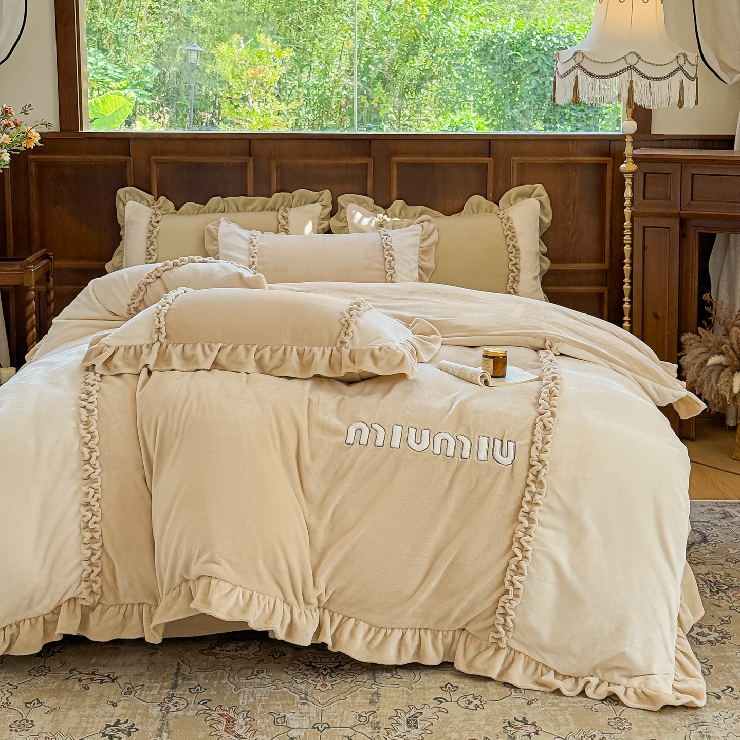 商品名称:阿那亚 2025新款加厚煦暖绒牛奶绒四件套韩版花边四件套刺绣四件套 伊贝米驼